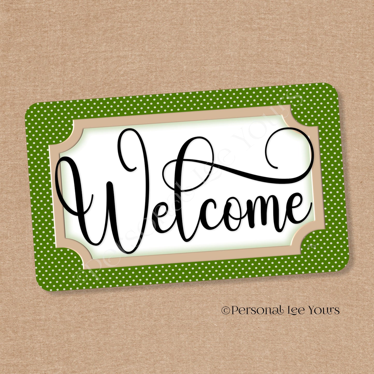 Simple Welcome Wreath Sign * Polka Dot, Moss and Tan * Horizontal * Lightweight Metal