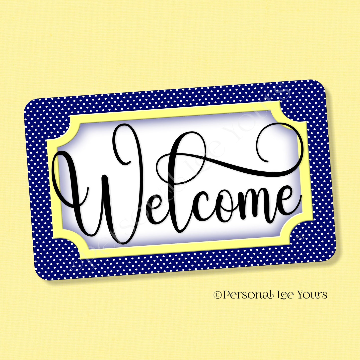 Simple Welcome Wreath Sign * Polka Dot, Navy and Yellow * Horizontal * Lightweight Metal