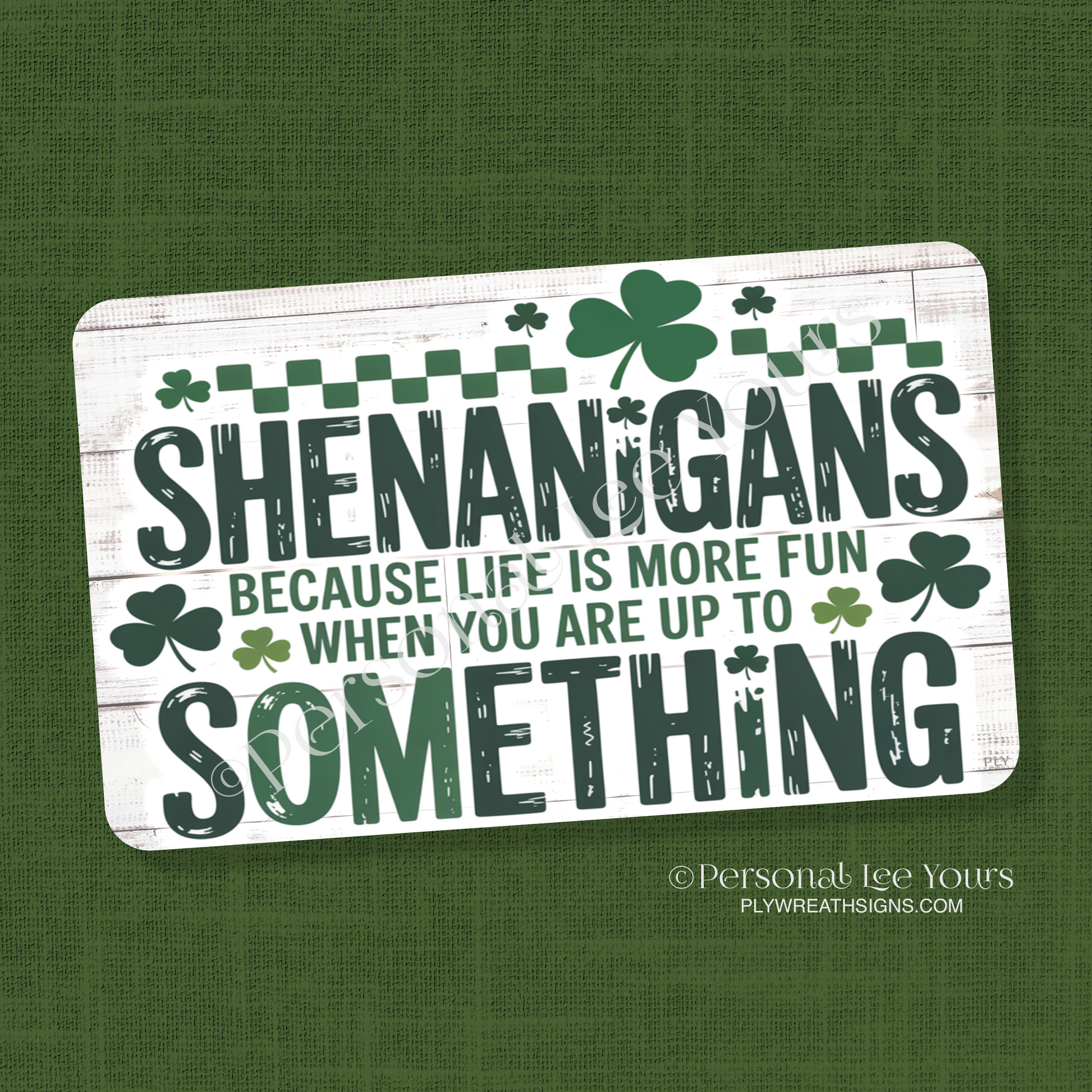 St. Patrick's Day Wreath Sign * Shenanigans * Horizontal * 3 sizes * Lightweight Metal