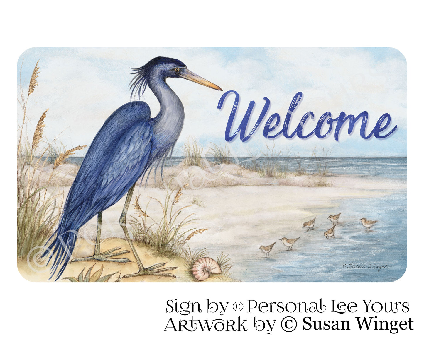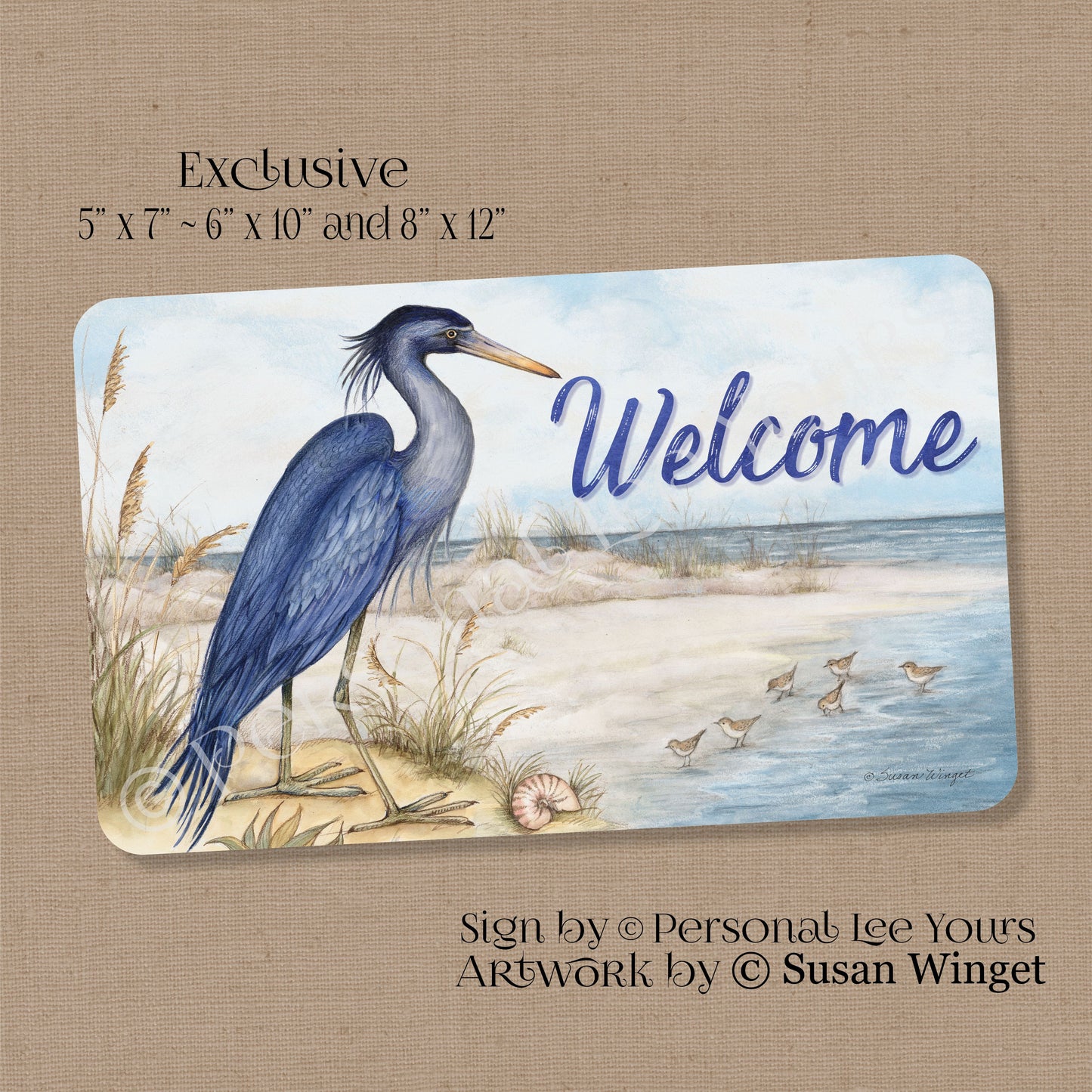 Susan Winget Exclusive Sign * Blue Heron Welcome * 3 Sizes * Lightweight Metal