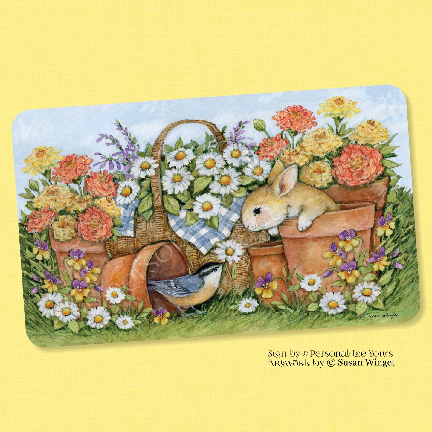 Susan Winget Exclusive Sign * Bunny In Flower Pot * Horizontal * Lightweight Metal