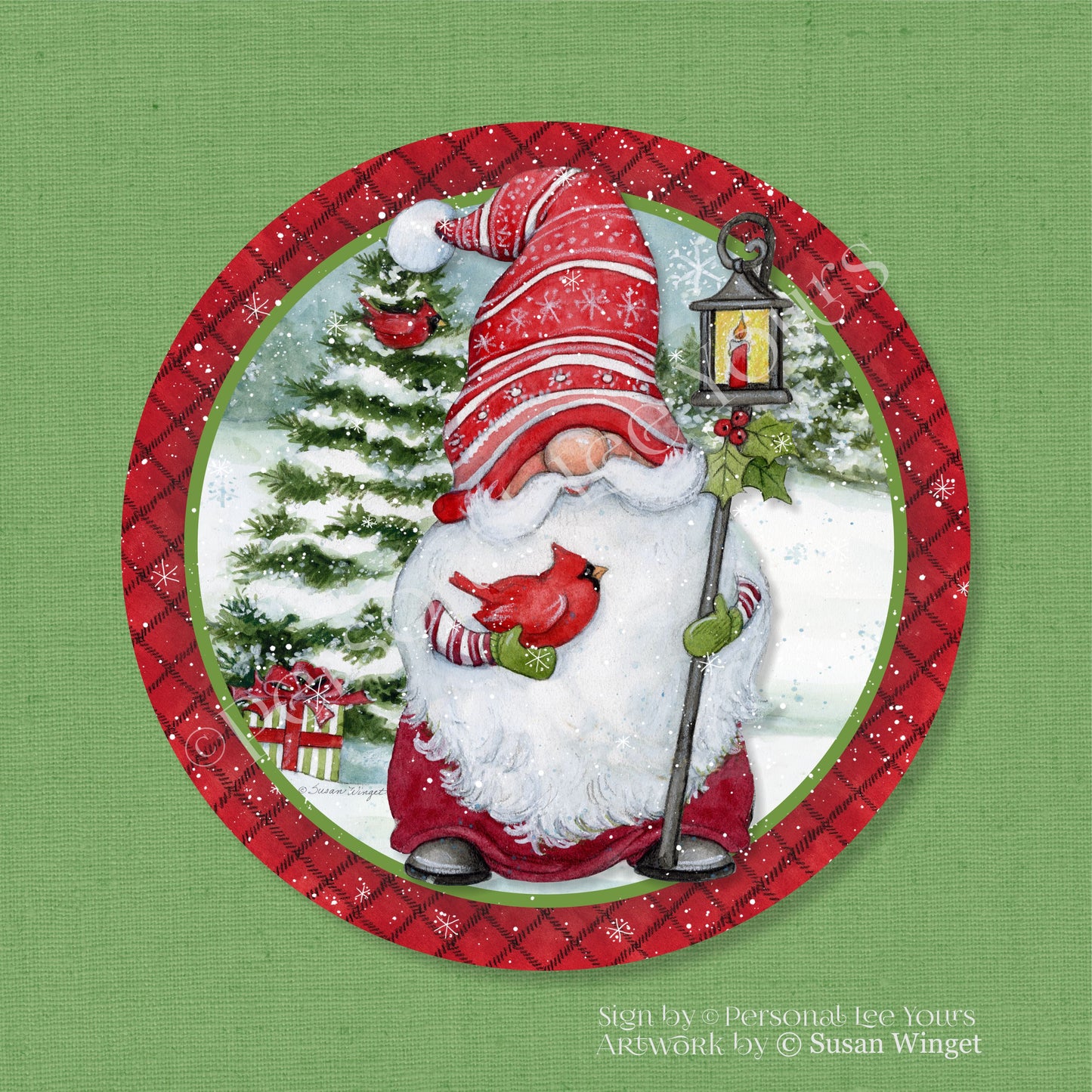 Susan Winget Exclusive Sign * Christmas Gnome * Round * Lightweight Metal