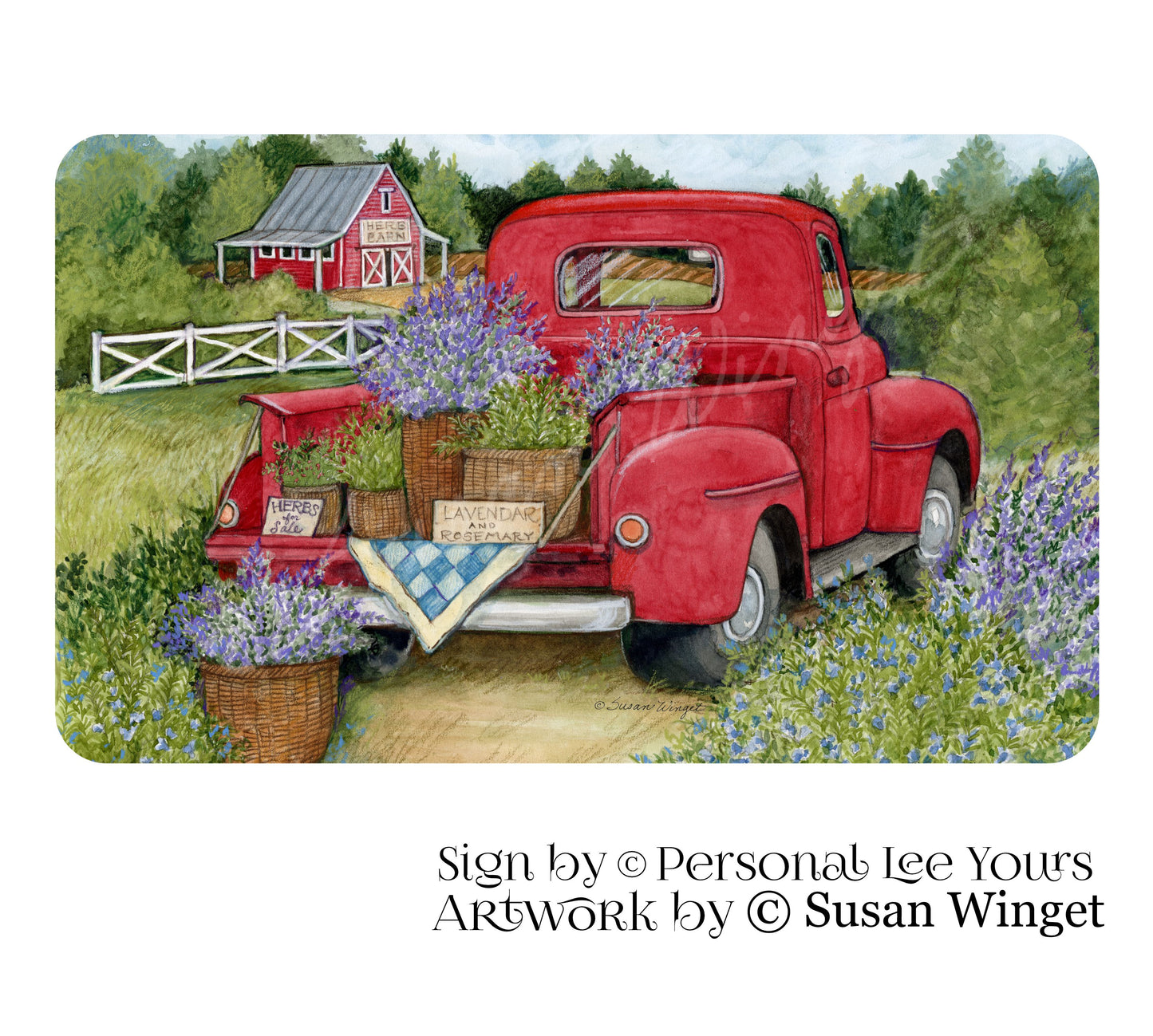 Susan Winget Exclusive Sign * Herbs For Sale * Red Truck * 3 Sizes * Lightweight Metal