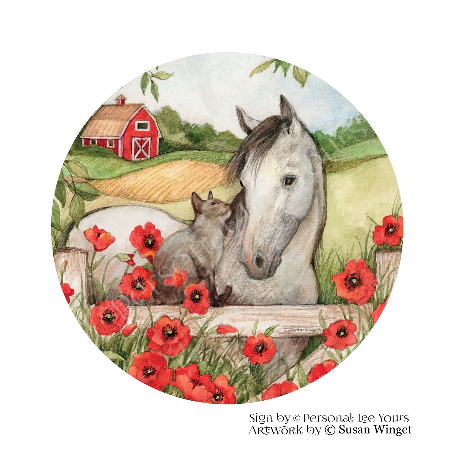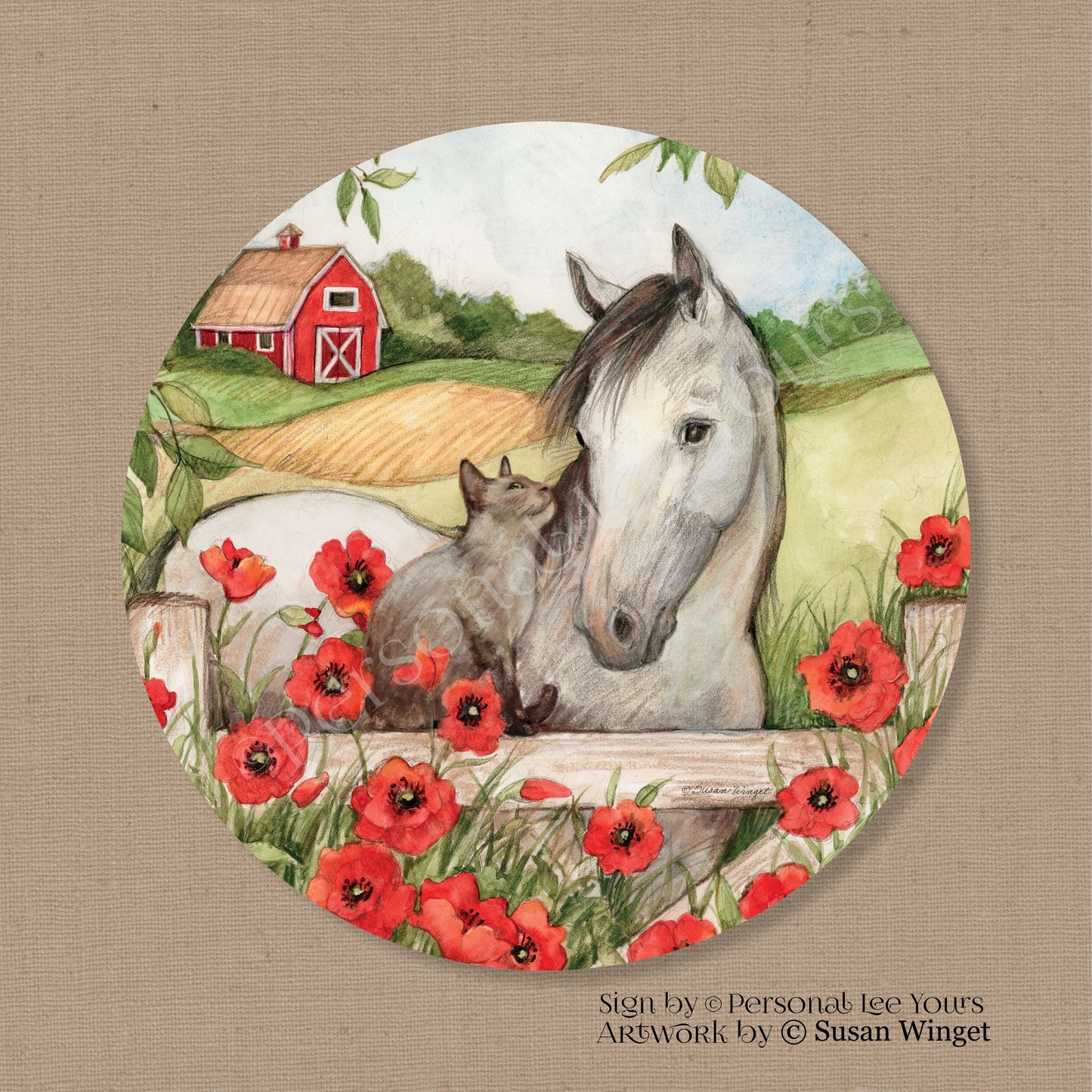 Susan Winget Exclusive Sign * Horse, Cat and Poppies * Round * Lightweight Metal