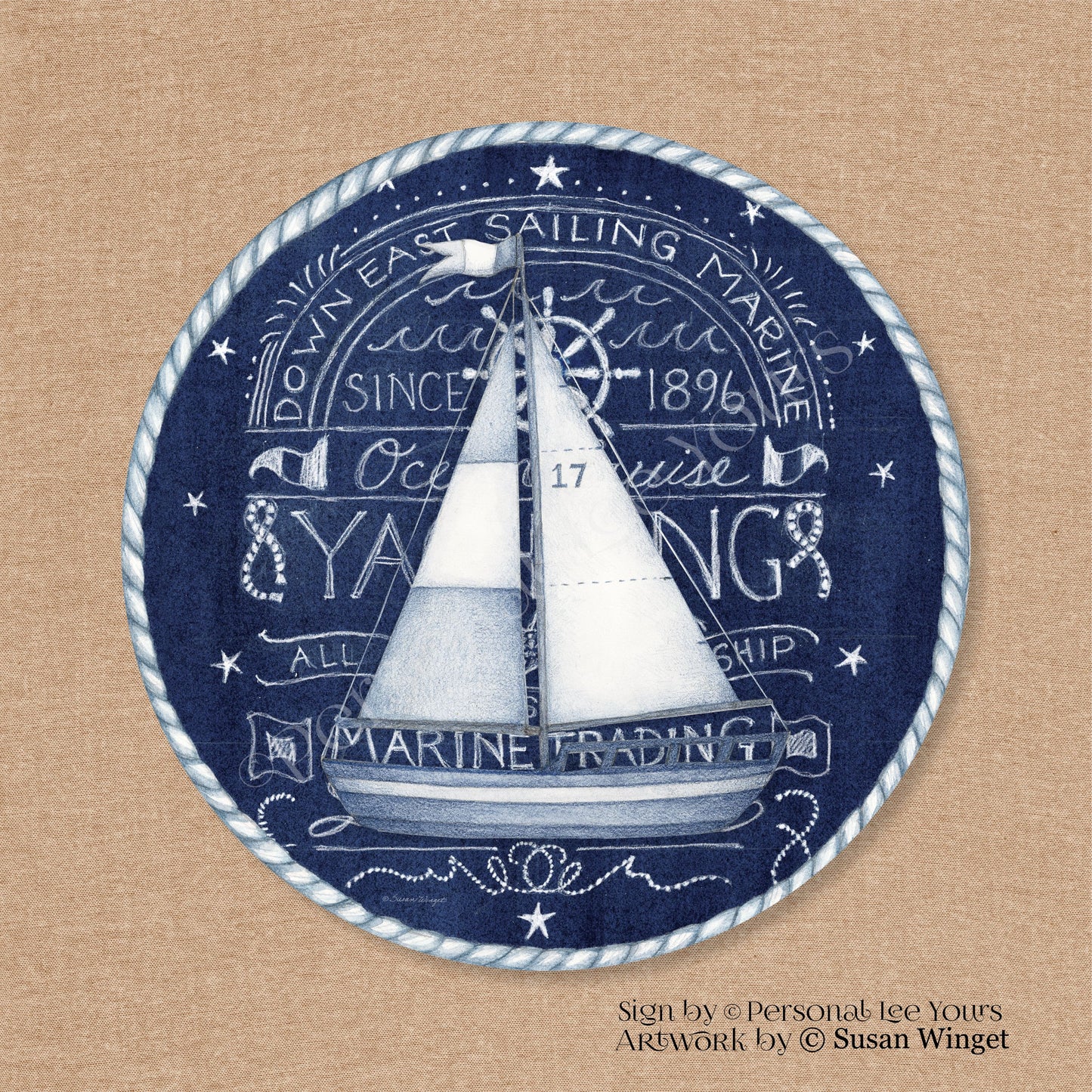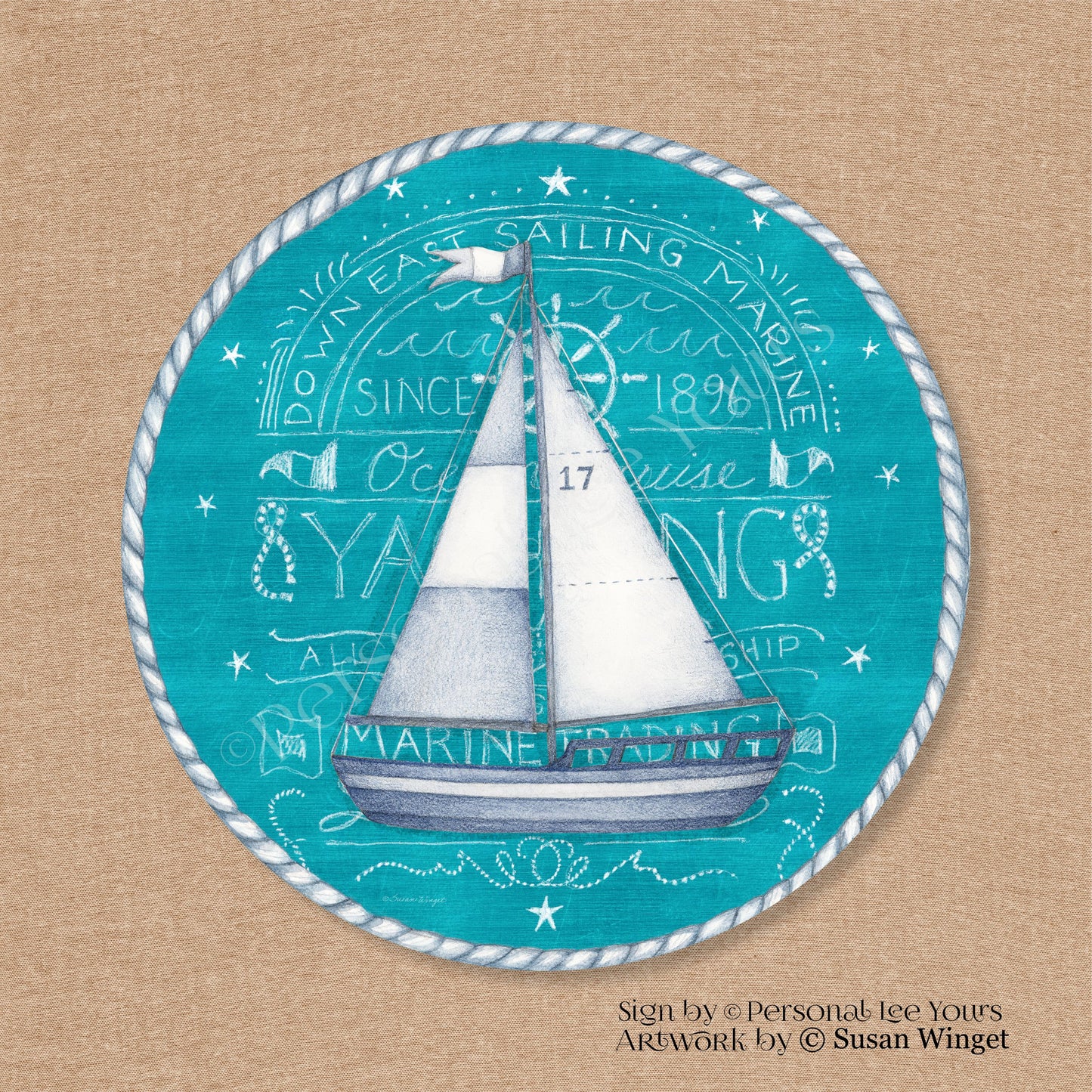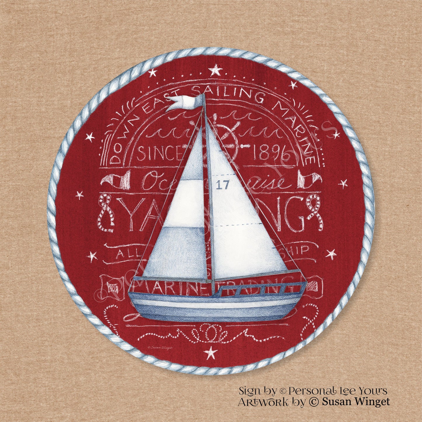 Susan Winget Exclusive Sign * Nautical Sailboat * Navy, Red or Teal * Round * Lightweight Metal