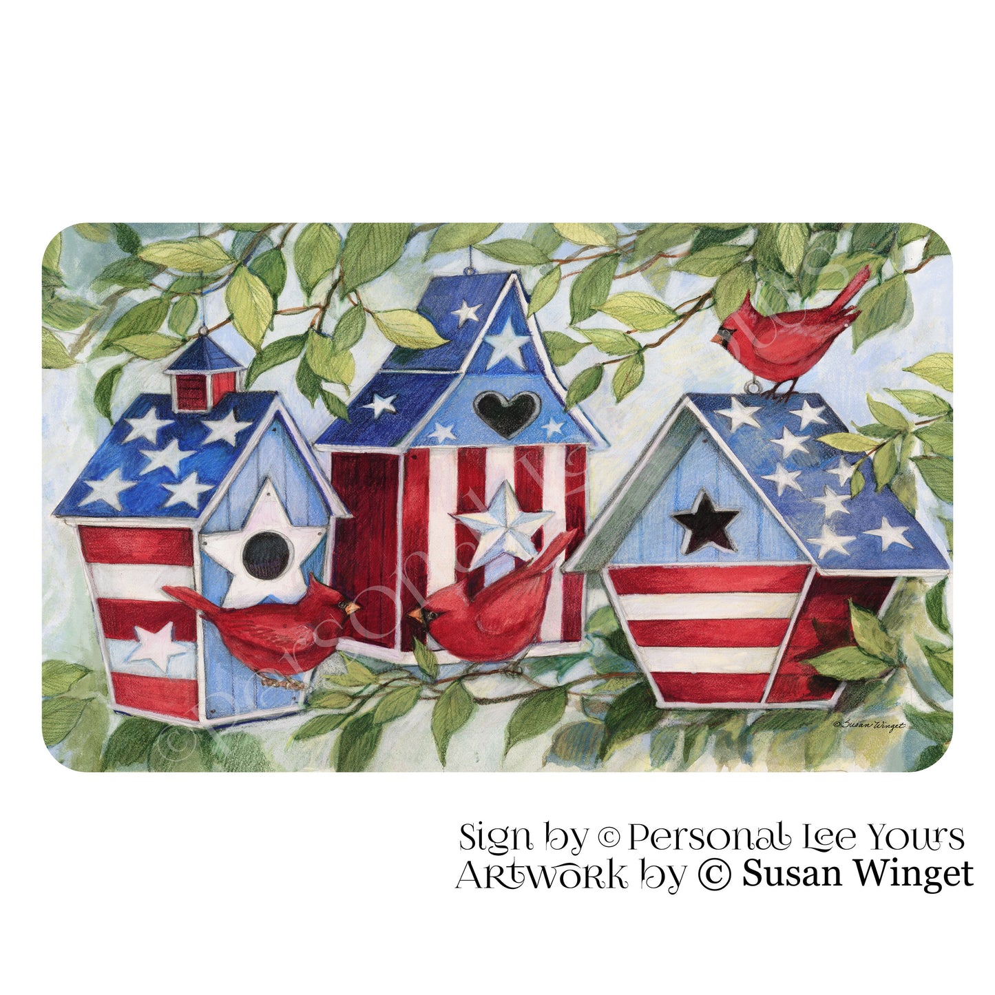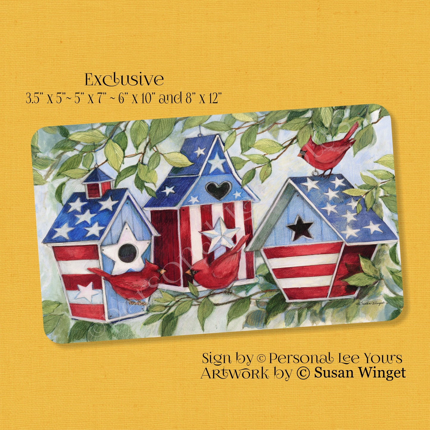 Susan Winget Exclusive Sign * Patriotic Birdhouse * Horizontal * 4 Sizes * Lightweight Metal