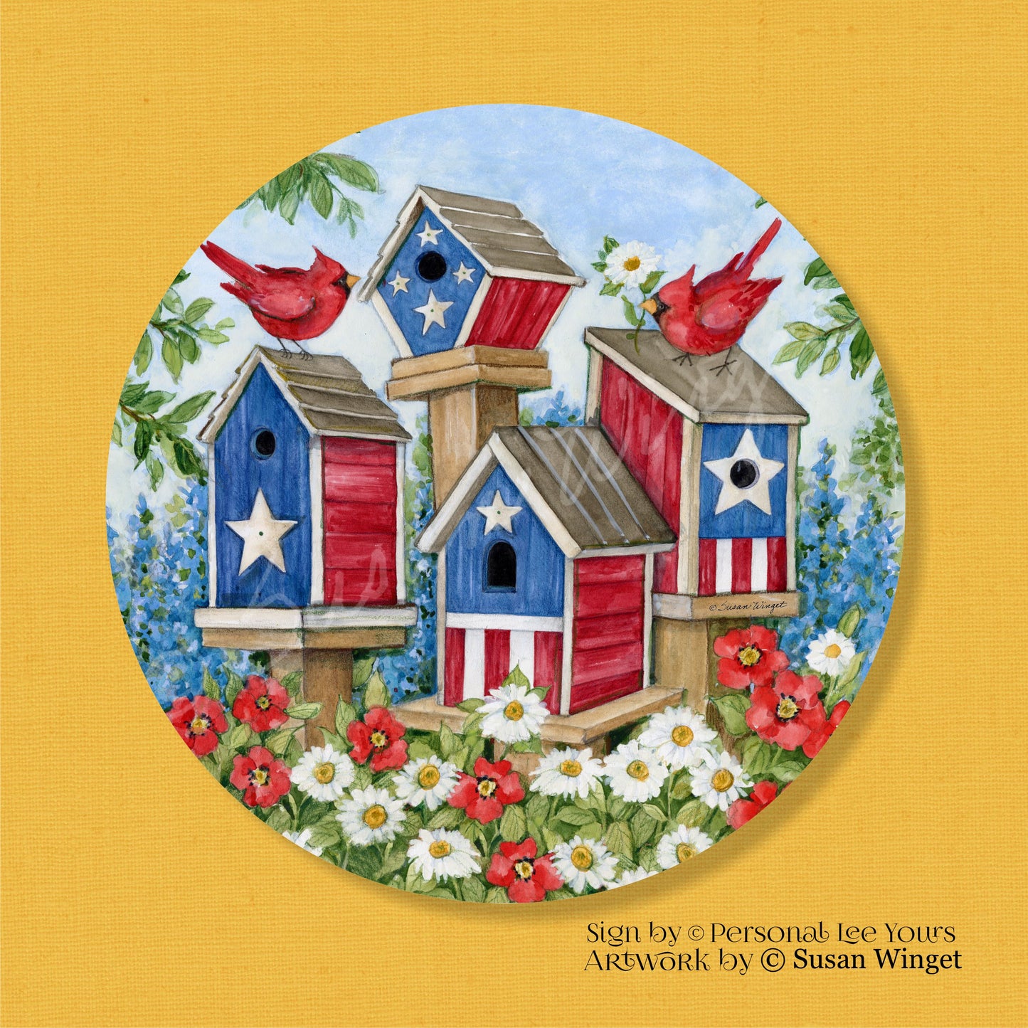 Susan Winget Exclusive Sign * Patriotic Birdhouses * Round * Lightweight Metal