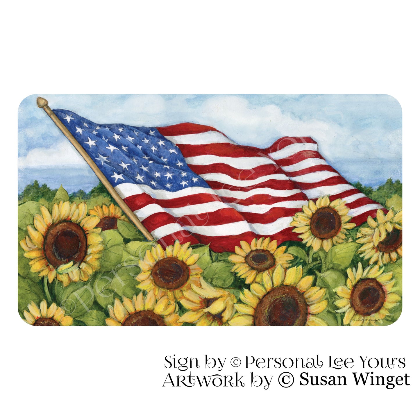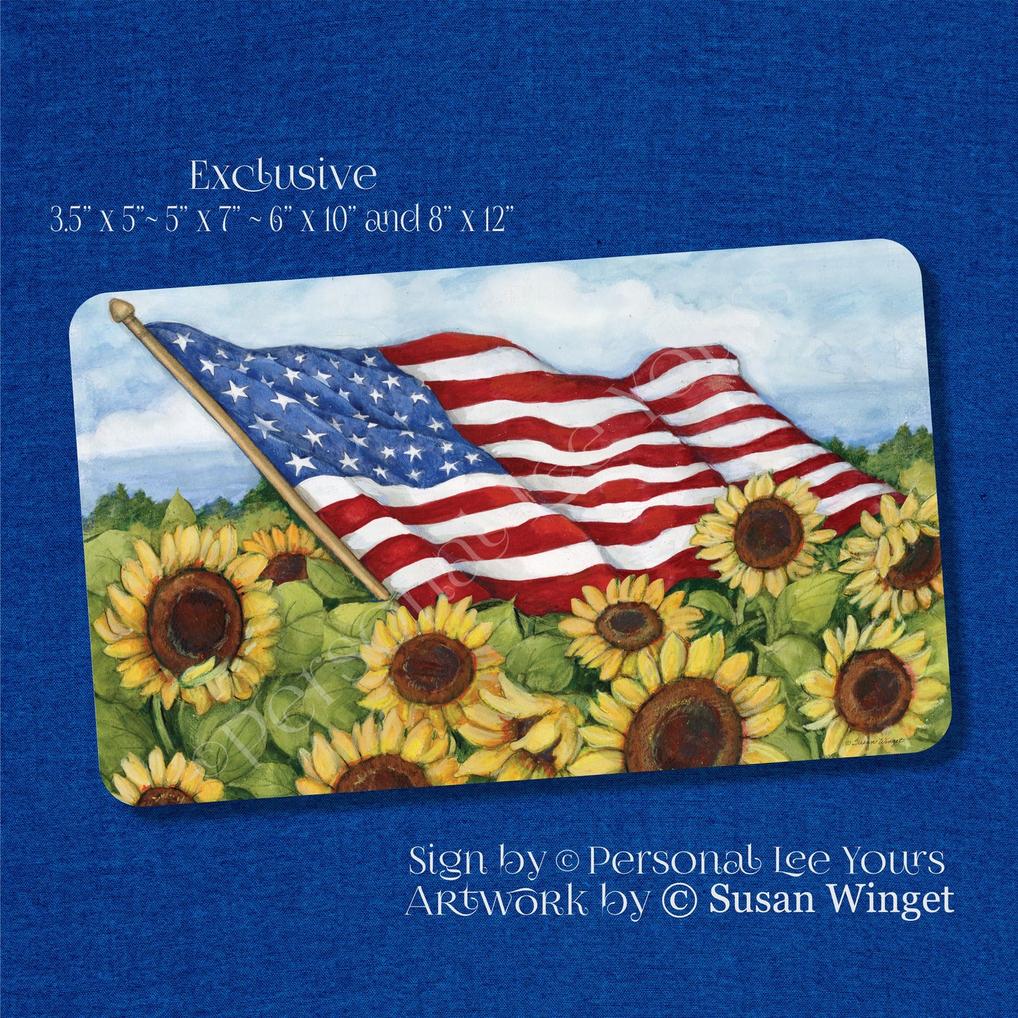 Susan Winget Exclusive Sign * Patriotic ~ Flag In The Sunflowers * Horizontal * 4 Sizes * Lightweight Metal