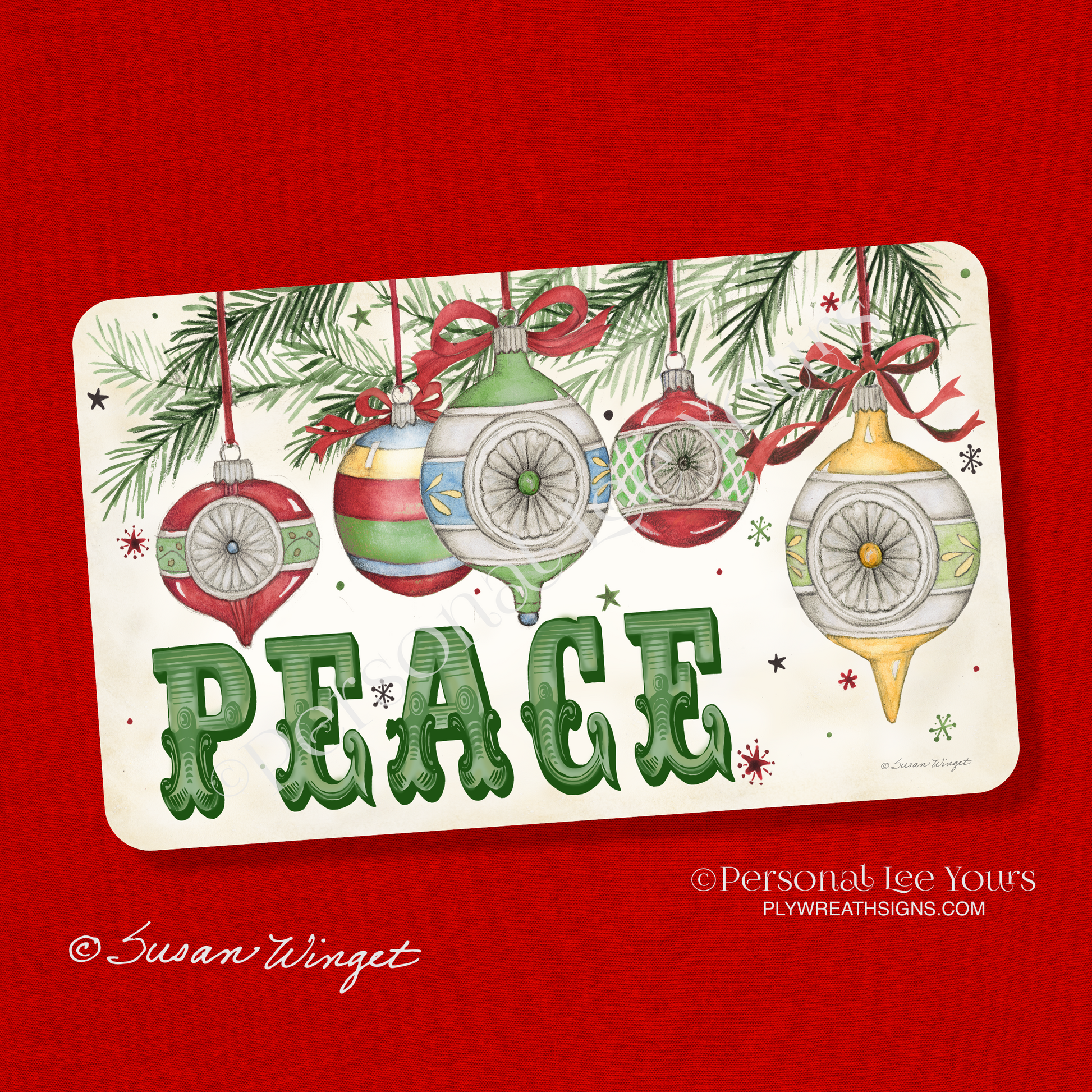 Susan Winget Exclusive Sign * Peace Ornaments * Horizontal * 3 Sizes * Lightweight Metal