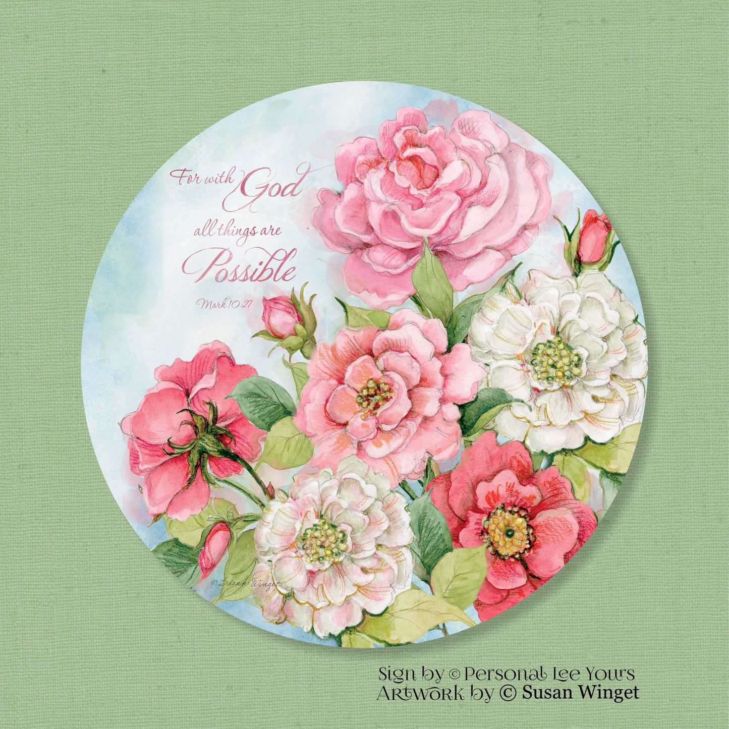 Susan Winget Exclusive Sign * Pink Peonies * Mark 10:27 * Round * Lightweight Metal