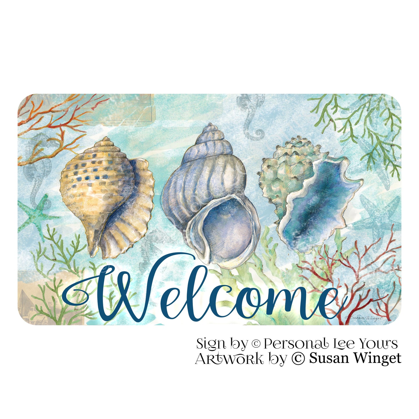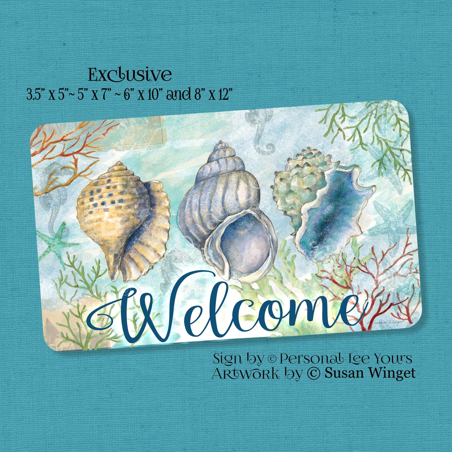 Susan Winget Exclusive Sign * Shells and Coral Welcome * Horizontal * 4 Sizes * Lightweight Metal