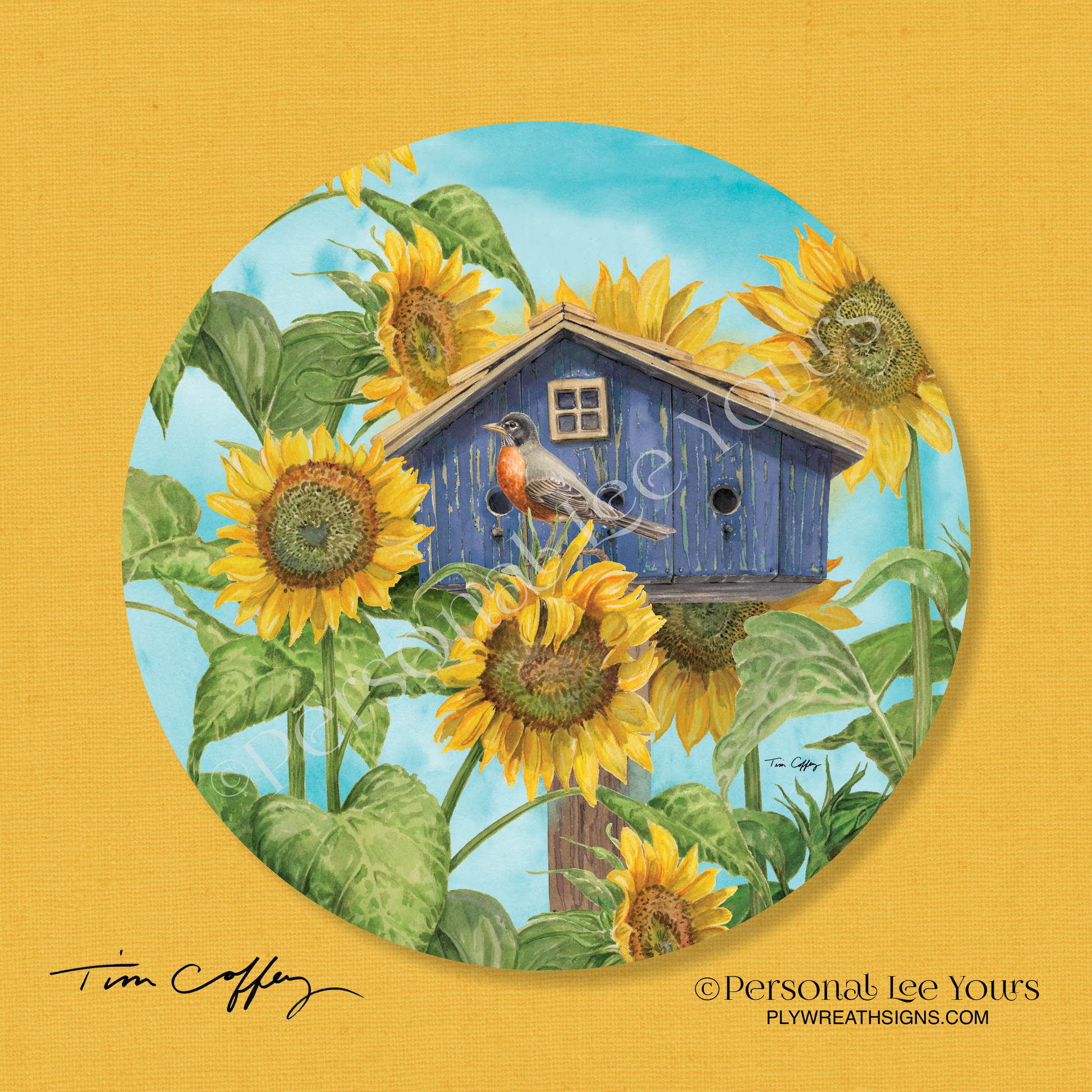 Tim Coffey Exclusive Sign * Sunflower Hideaway * Round * Lightweight Metal