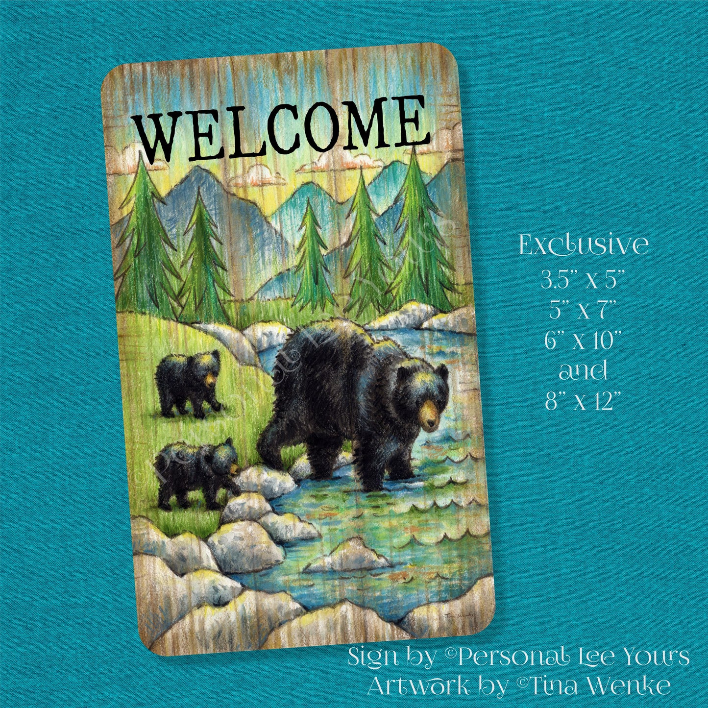 Tina Wenke Exclusive Sign * Black Bear Welcome * Vertical * 4 Sizes * Lightweight Metal