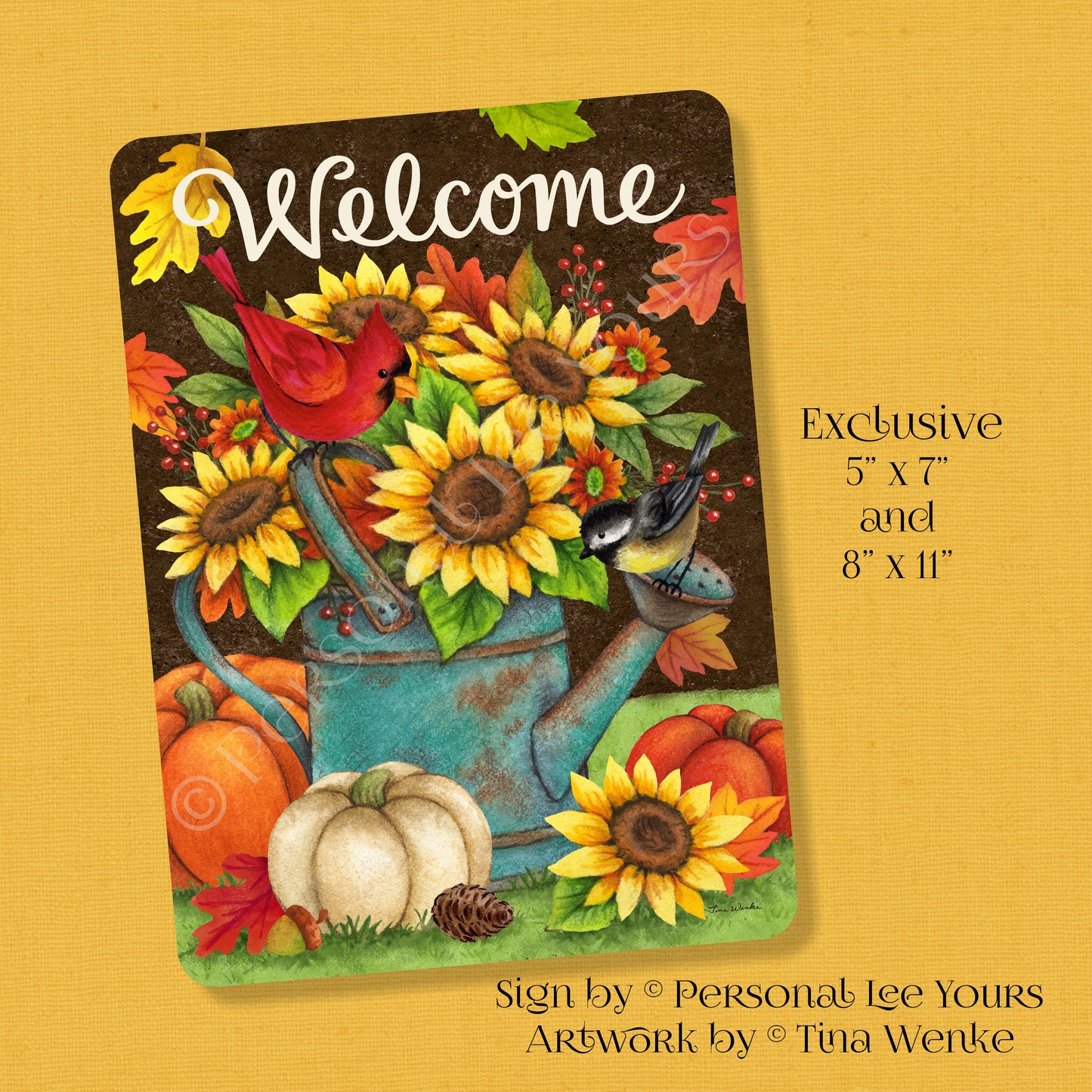 Tina Wenke Exclusive Sign * Fall Watering Can Welcome * Vertical * 2 Sizes * Lightweight Metal