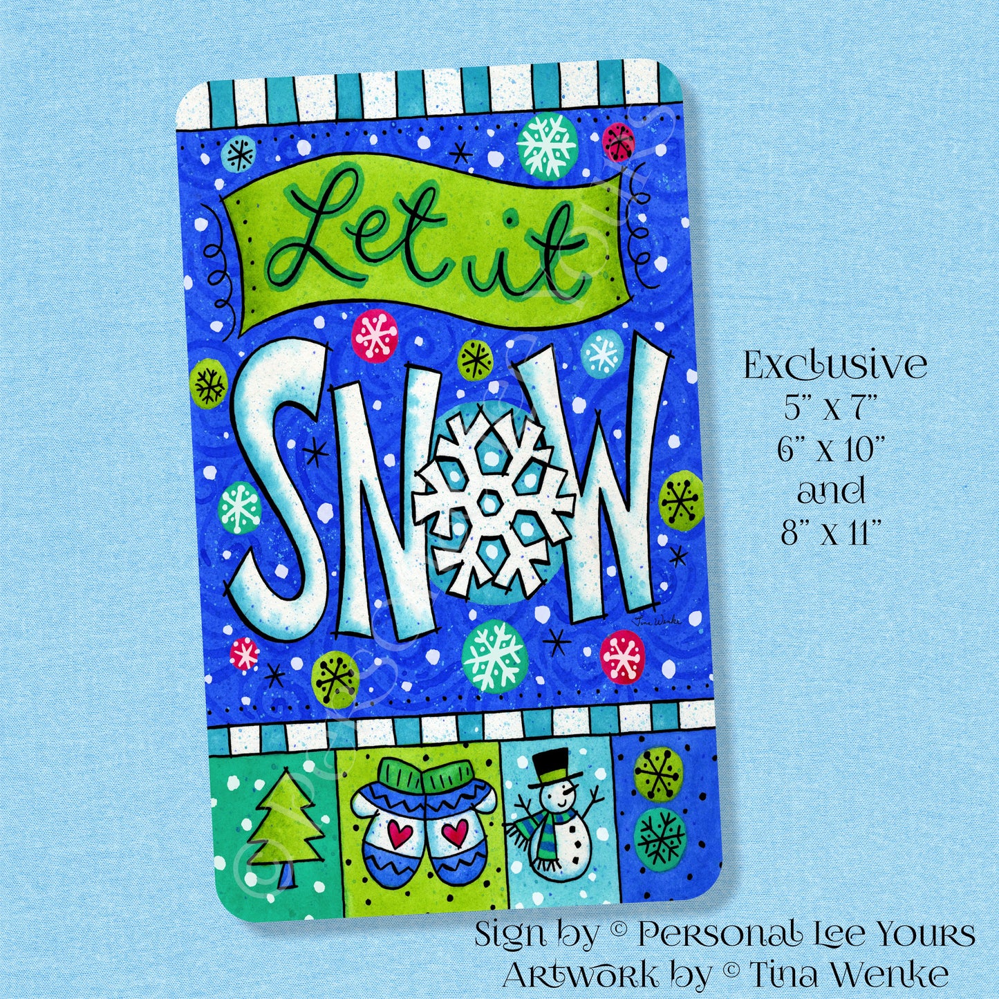 Tina Wenke Exclusive Sign * Let It Snow * Vertical * 3 Sizes * Lightweight Metal