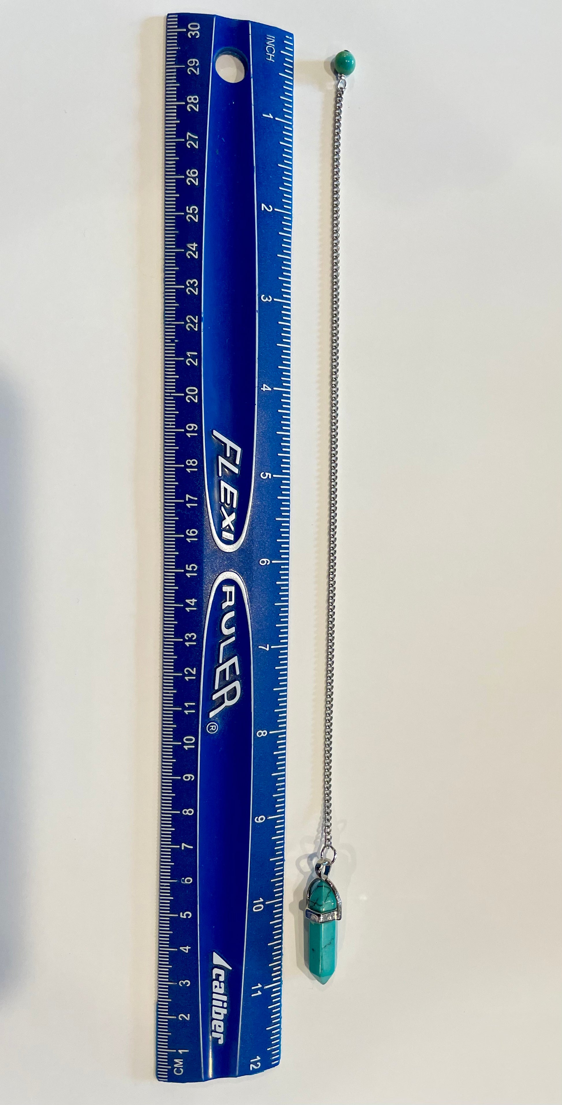 Turquoise Howlite Pendulum for use with pendulum board. This beautiful pendulum is made by one of our local artisans which means they are made in the United States.