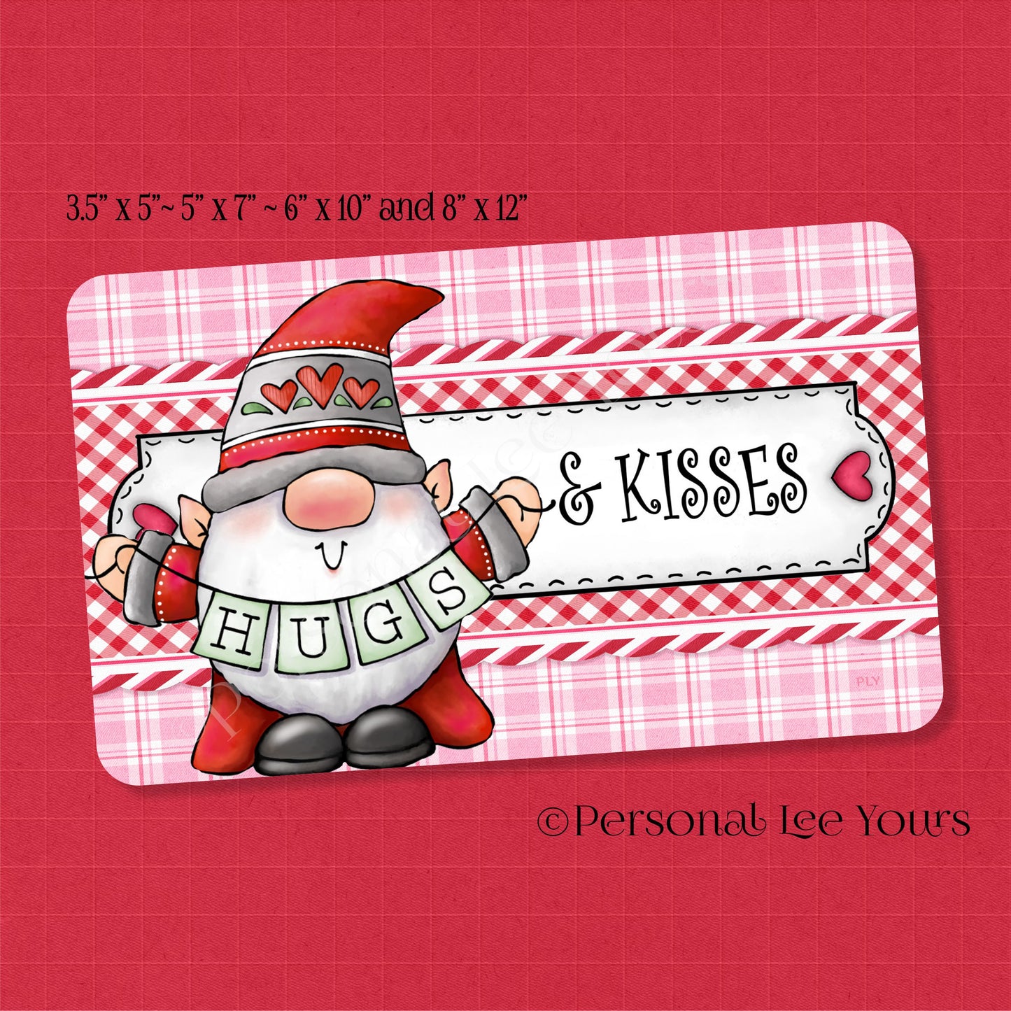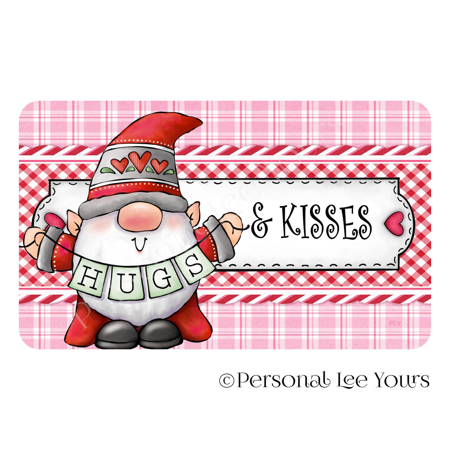 Valentine Wreath Sign * Hugs and Kisses Gnome * Horizontal * 4 Sizes * Lightweight Metal