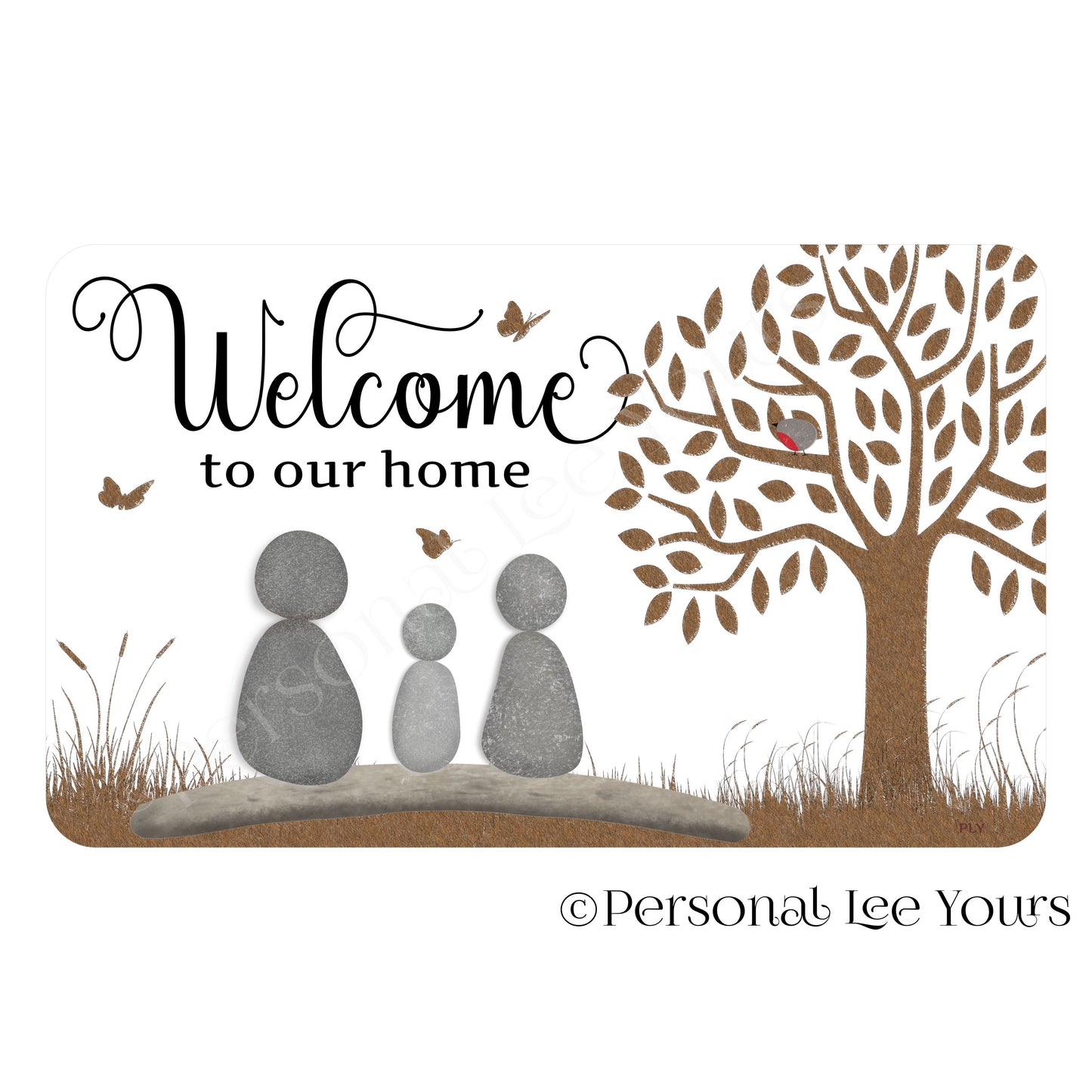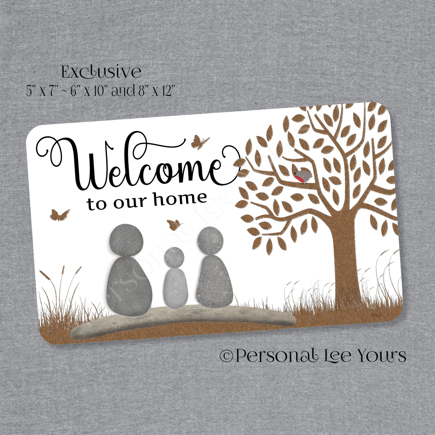 Welcome To Our Home Wreath Sign * Pebble Family of 3 * Horizontal * 3 Sizes * Lightweight Metal
