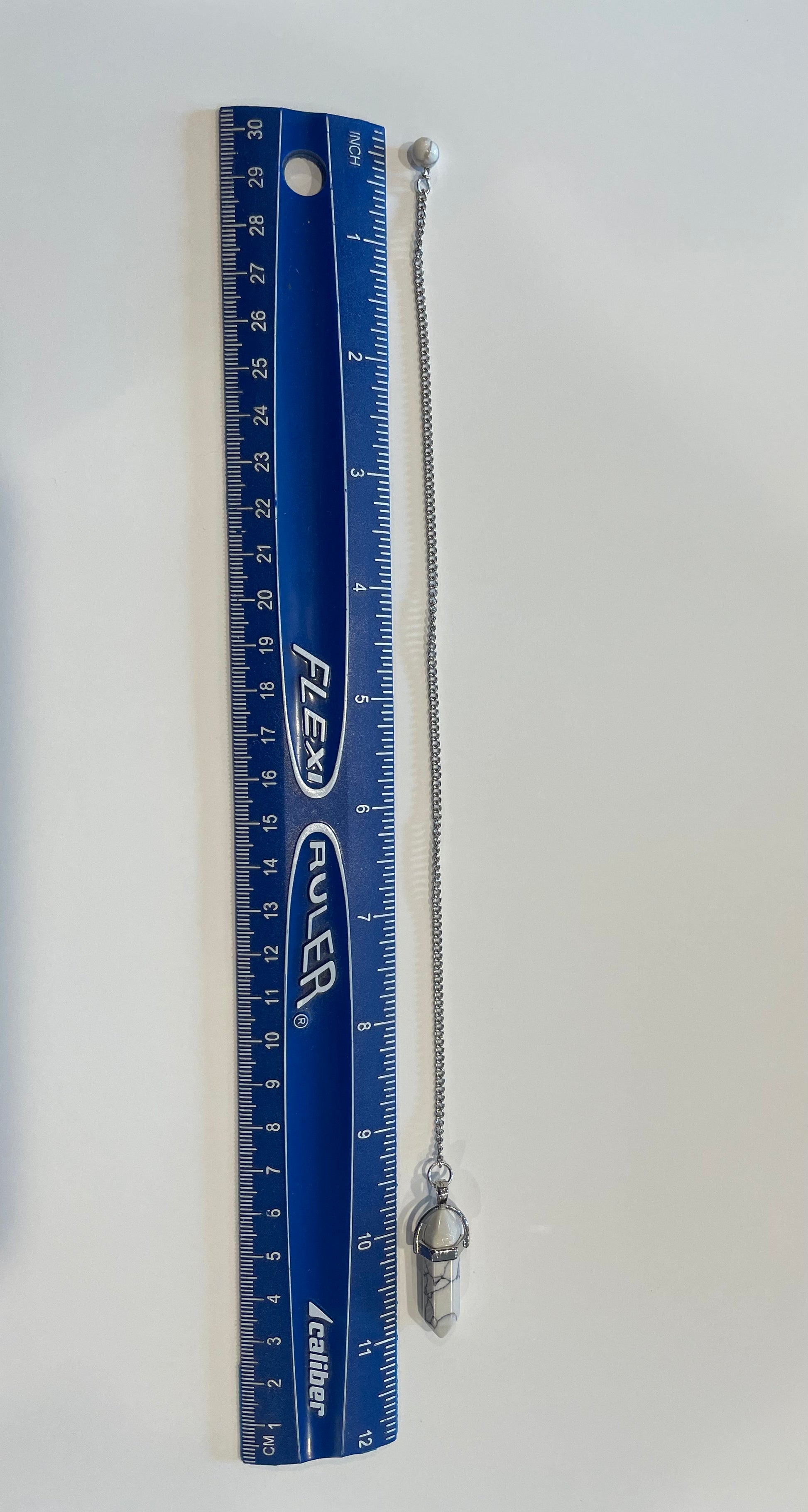 White Howlite Pendulum for use with pendulum board. This beautiful pendulum is made by one of our local artisans which means they are made in the United States.
