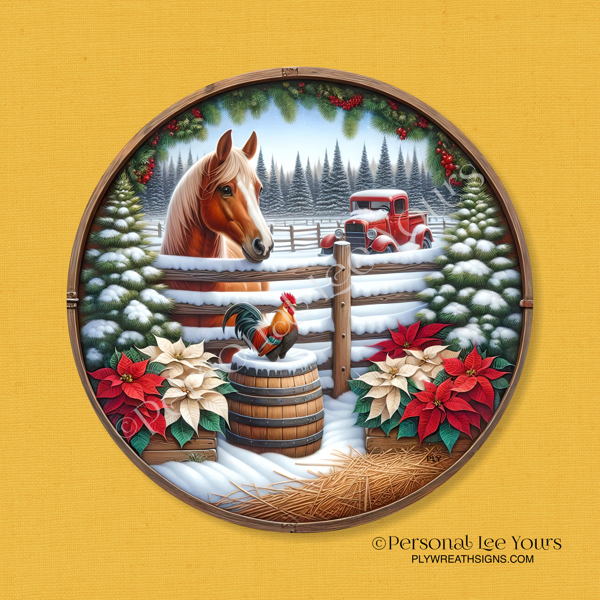 Winter Wreath Sign * Christmas Morning On The Farm * Round * Lightweight Metal