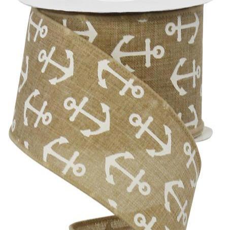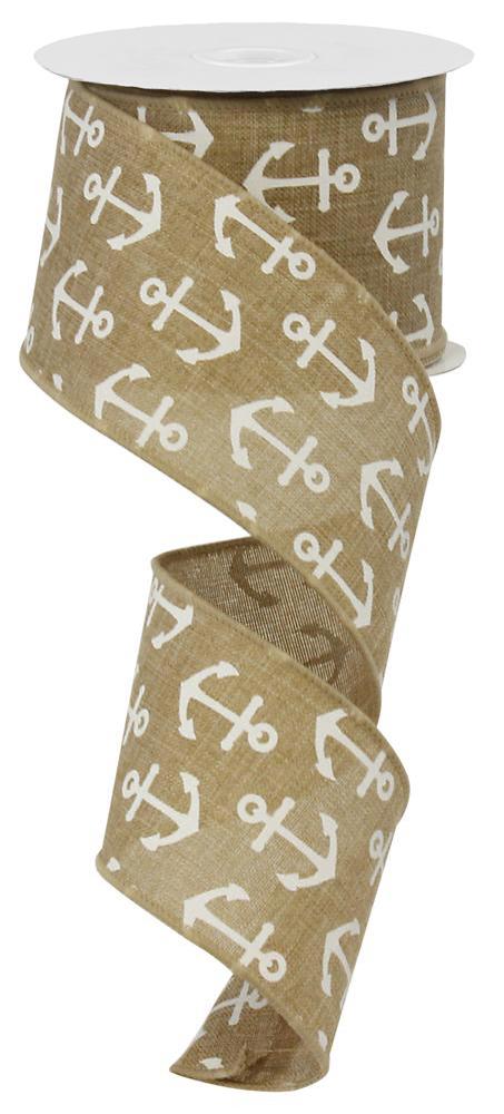 Wired Ribbon * Basic Anchor * Lt. Beige/White * Canvas* 2.5" x 10 Yards * RG014891C