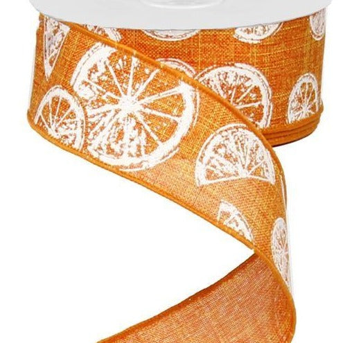 Wired Ribbon * Citrus * Orange and White Canvas * 1.5" x 10 Yards * RG1272KJ