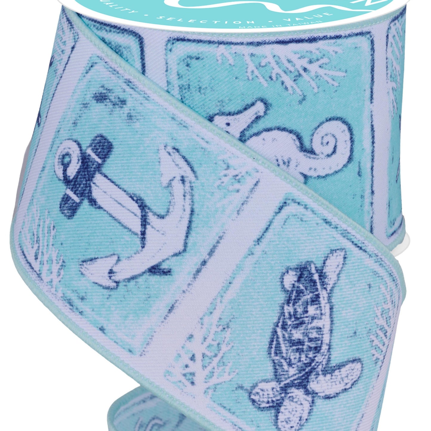 Wired Ribbon * Coastal Blocks * White, Navy, Turquoise, Mint on White * 2.5" x 10 Yards * Canvas * RGF141103
