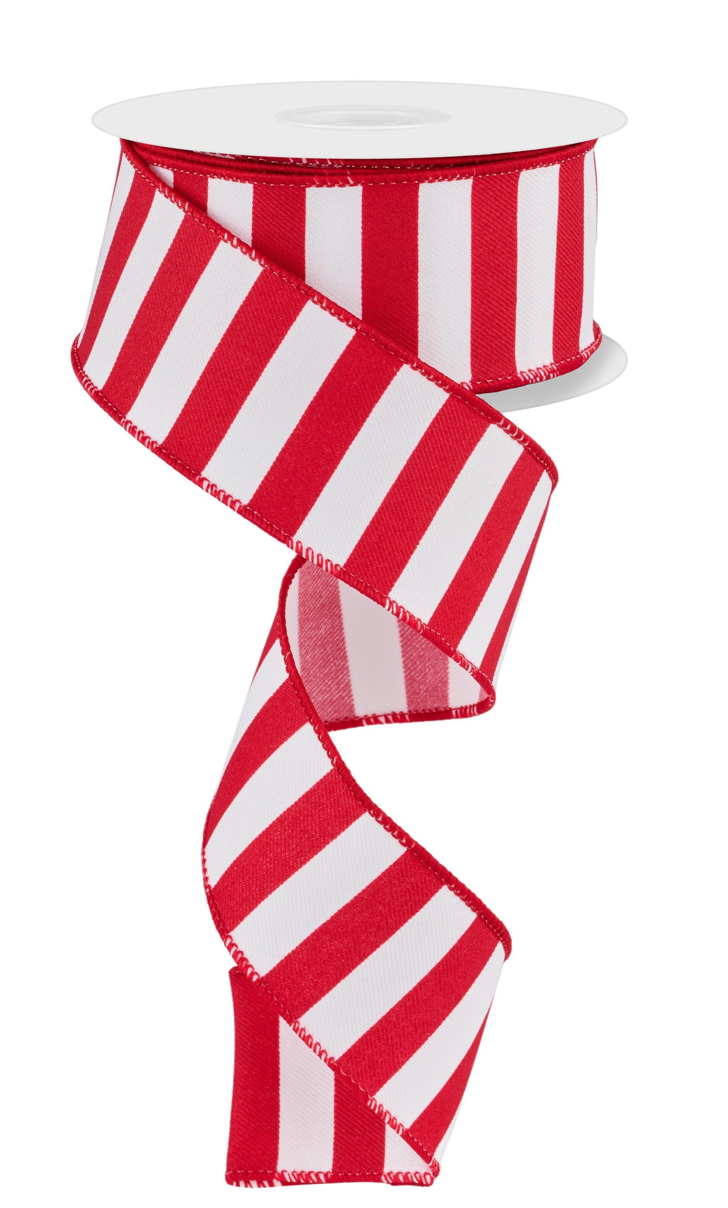 Wired Ribbon * Medium Horizontal Stripe * Red and White Canvas * 1.5" x 10 Yards * RGE178467