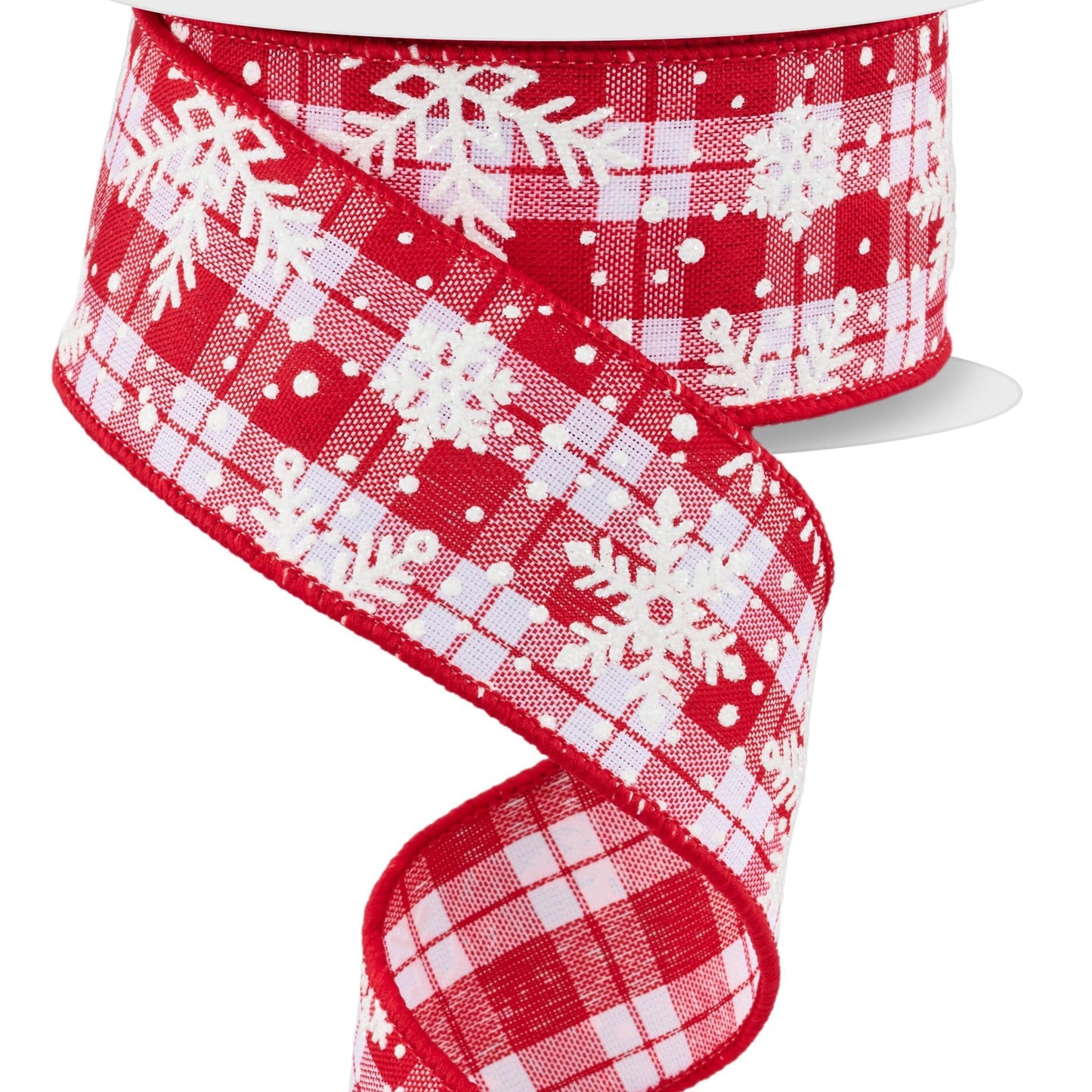 Wired Ribbon * Multi Snowflake on Woven * Red/White * 1.5" x 10 Yards * Canvas * RGF101024