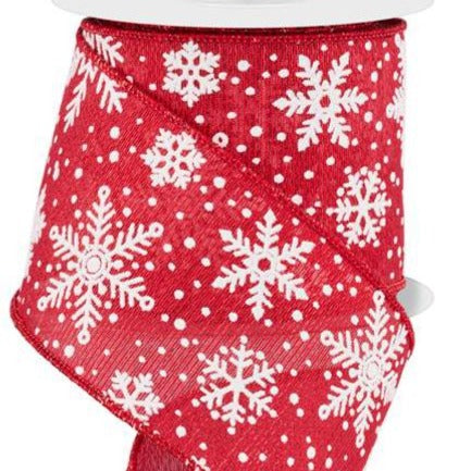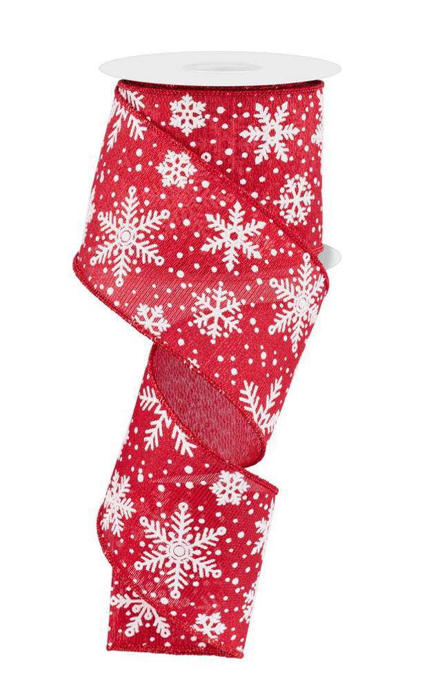 Wired Ribbon * Multi Snowflakes * Red and White Metallic Canvas * 2.5" x 10 Yards * RGE192024