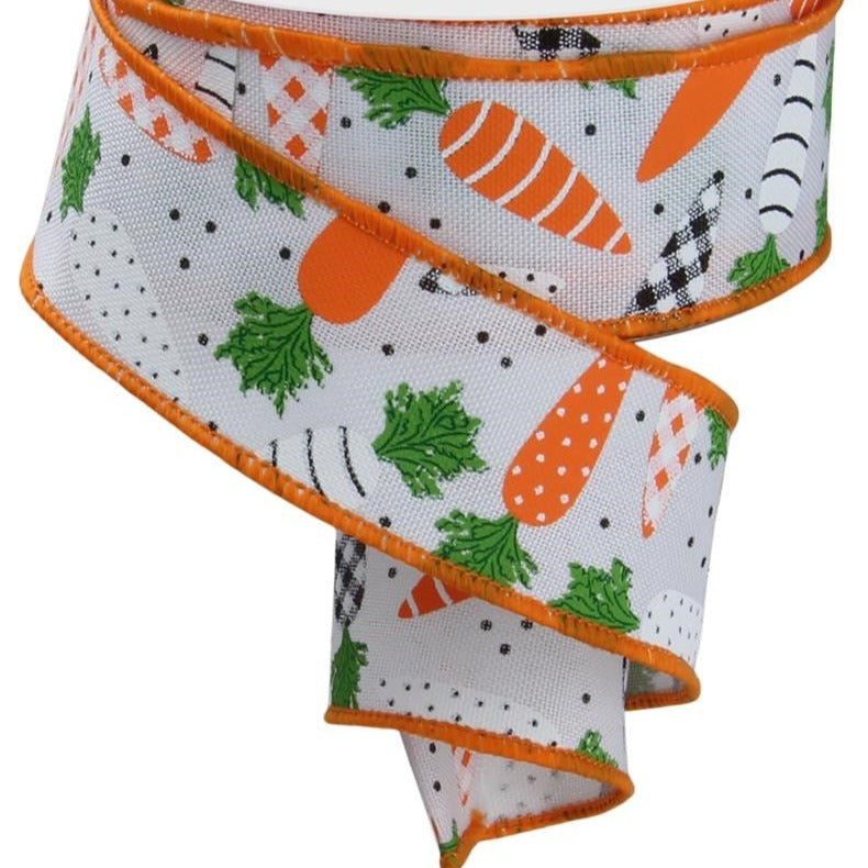 Wired Ribbon * Patterned Carrots * Orange, Black, Green and White Canvas * 1.5" x 10 Yards * RGE112827