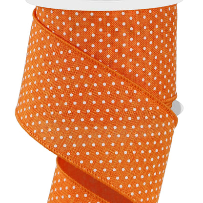 Wired Ribbon * Raised Swiss Dots * Orange and White Canvas * 2.5" x 10 Yards * RG01652HW