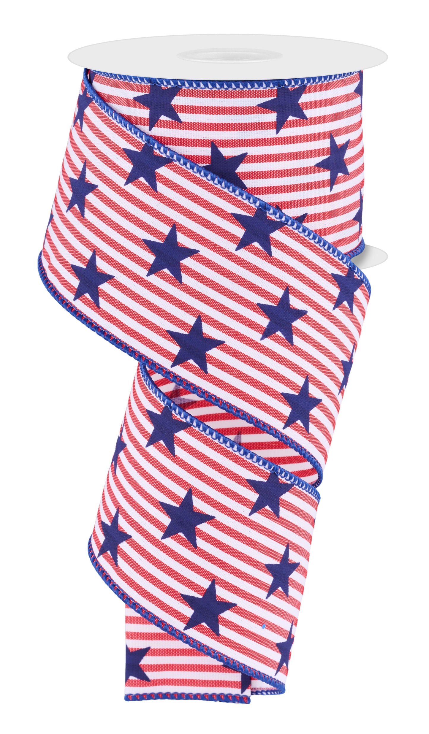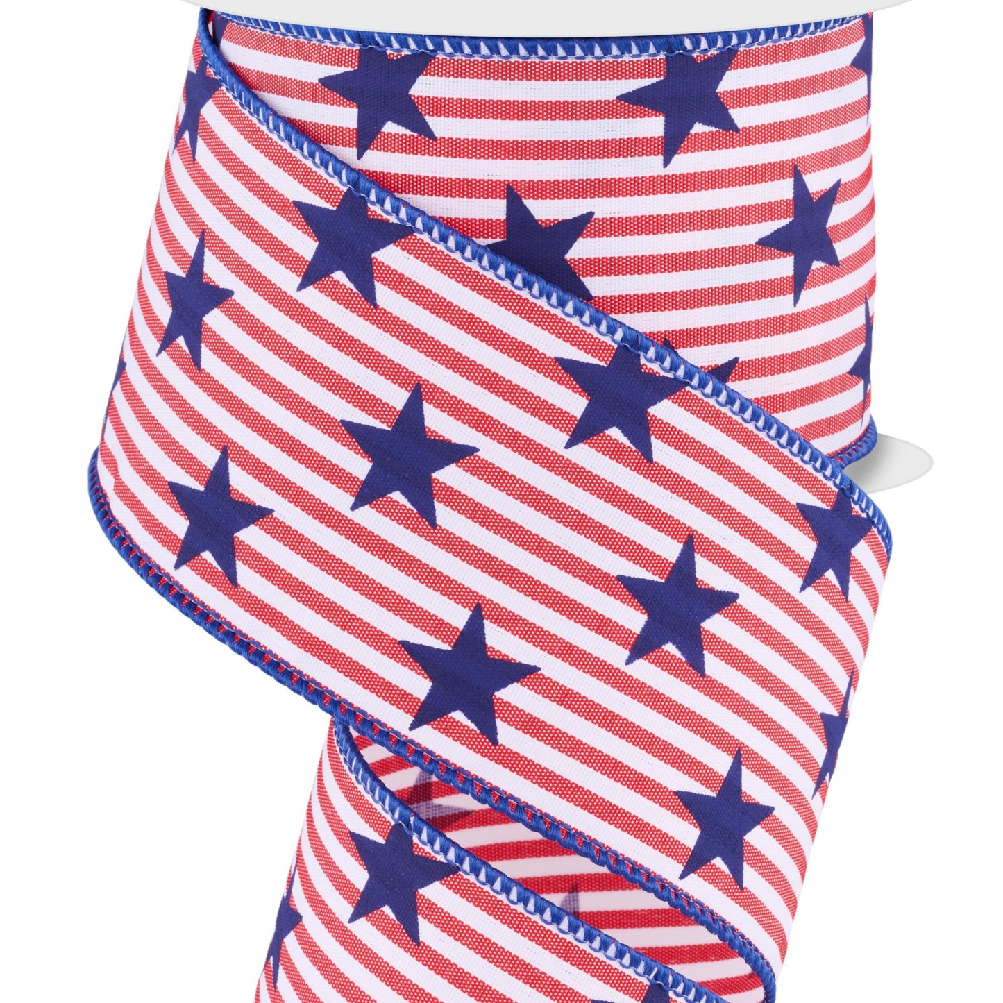 Wired Ribbon * Stars on Stripes * Red, White and Blue Canvas* 2.5" x 10 Yards * RGF1035W7