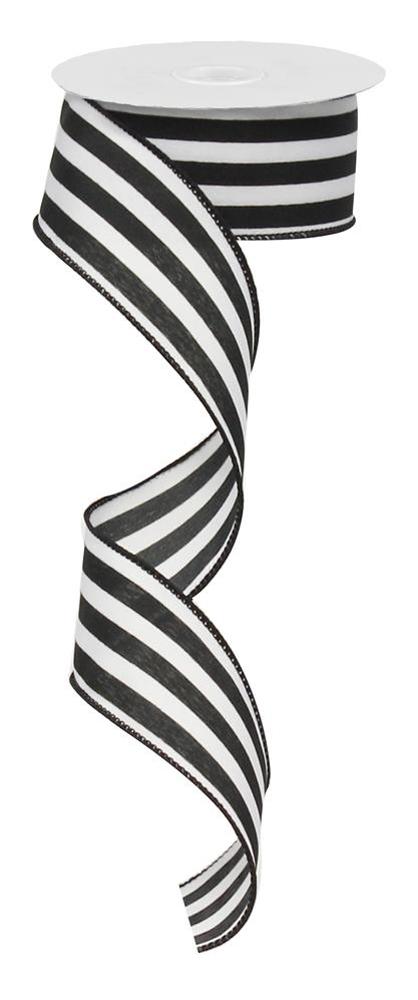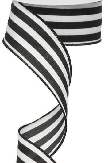 Wired Ribbon * Vertical Stripe * Black and White Canvas * 1.5" x 10 Yards * RX9135X6