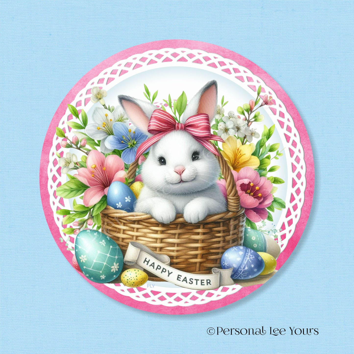 Wreath Sign * Easter Bunny In Basket * Round * Lightweight Metal