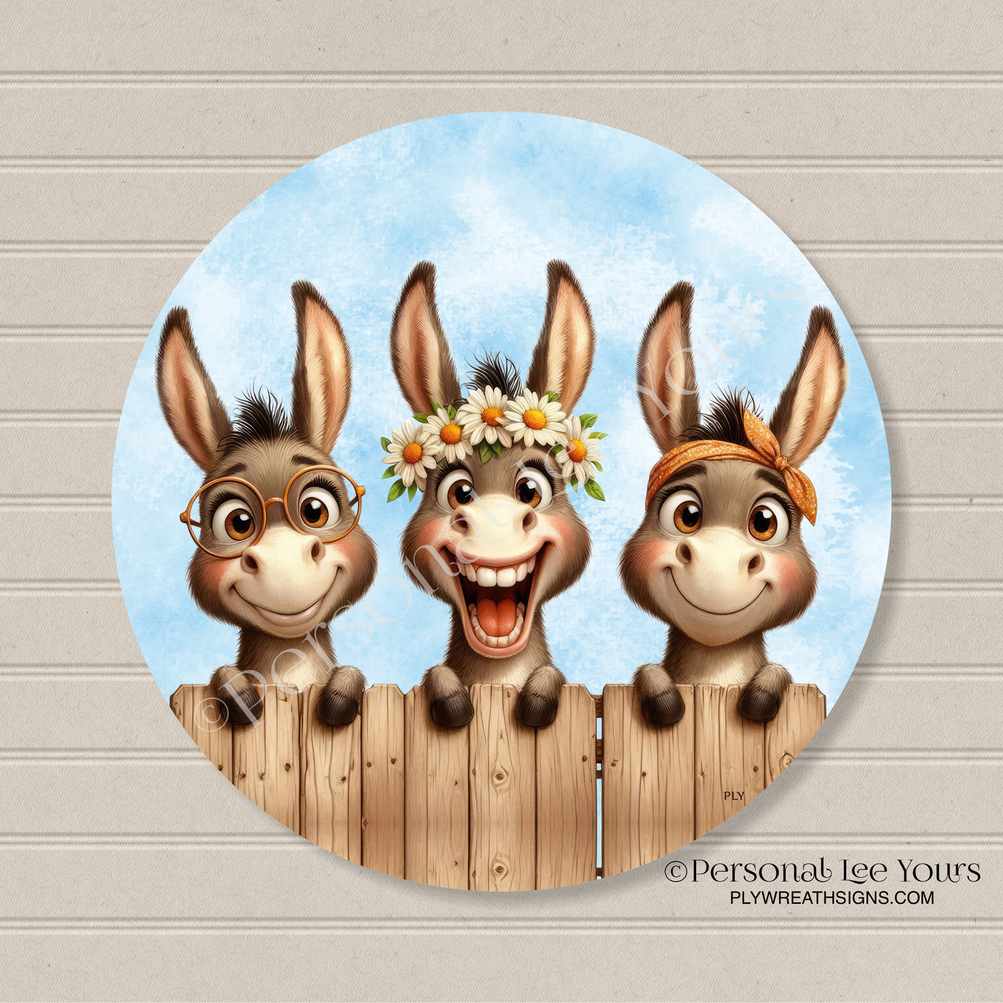 Wreath Sign * Funny Donkeys * Round * Lightweight Metal