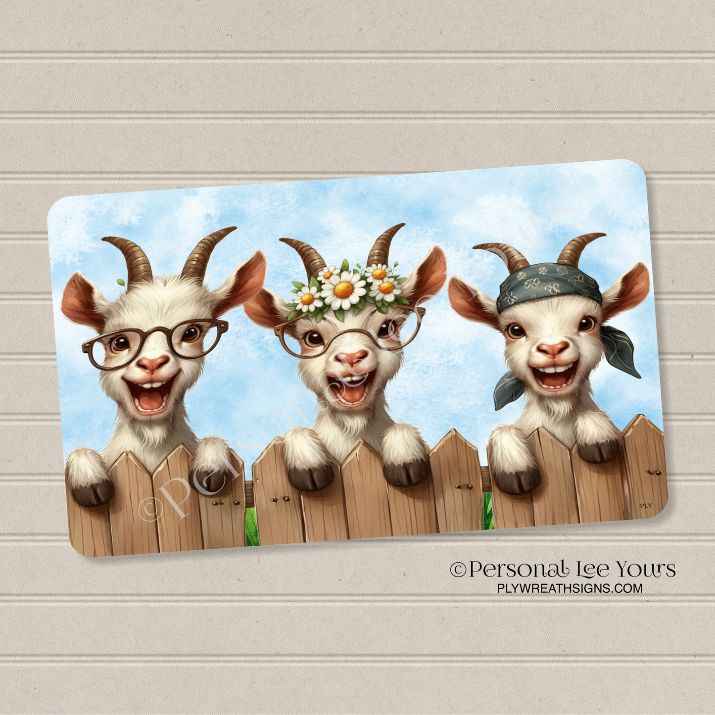 Wreath Sign * Funny Goats * Horizontal * 4 Sizes * Lightweight Metal