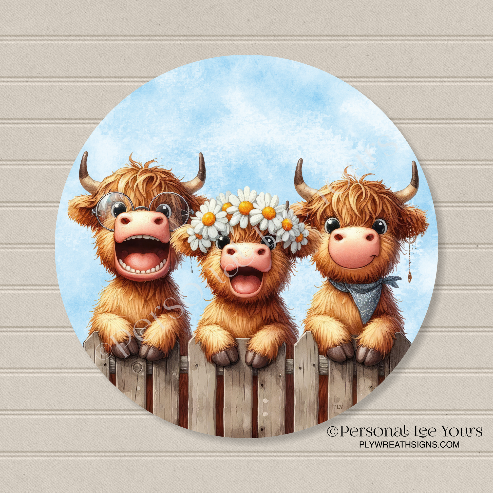 Wreath Sign * Funny Highland Cows * Round * Lightweight Metal