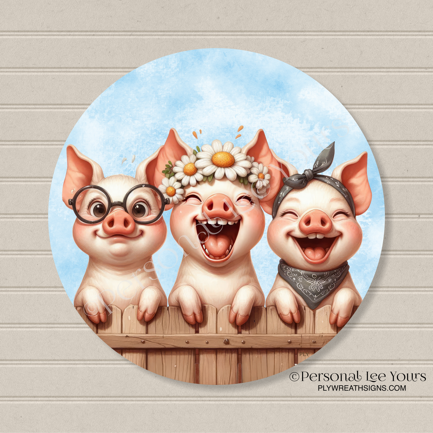 Wreath Sign * Funny Pigs * Round * Lightweight Metal