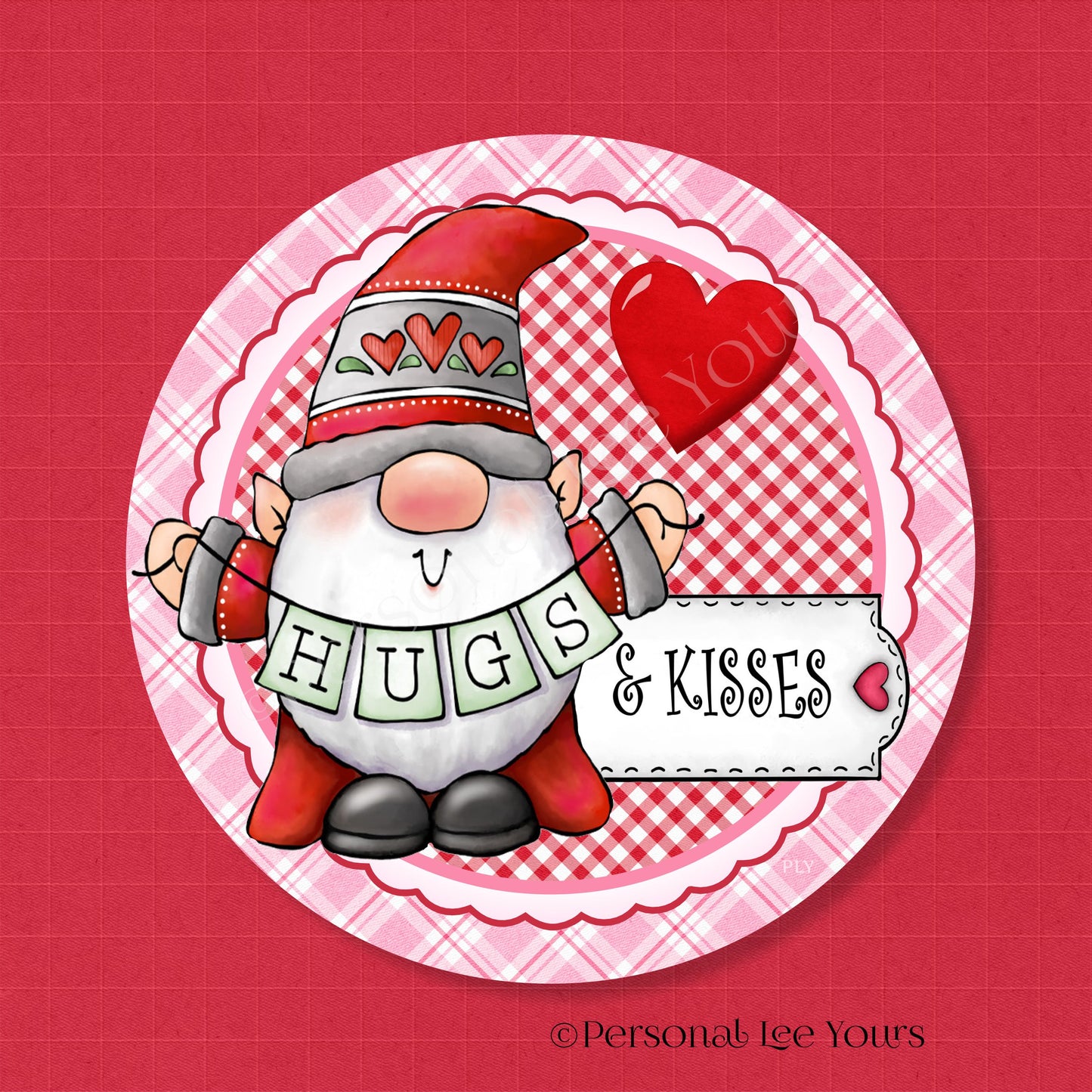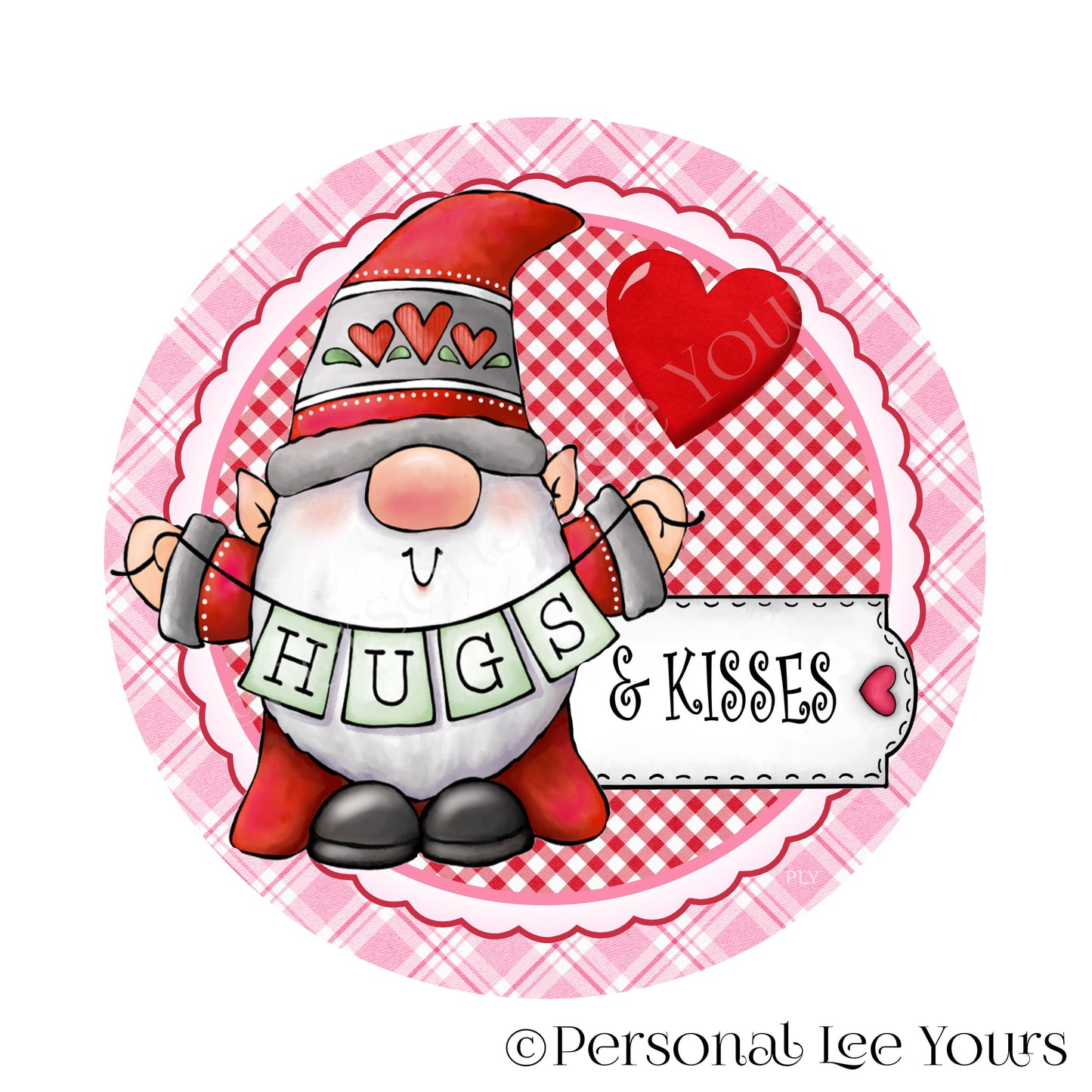 Valentine Wreath Sign * Hugs and Kisses * Round * Lightweight Metal