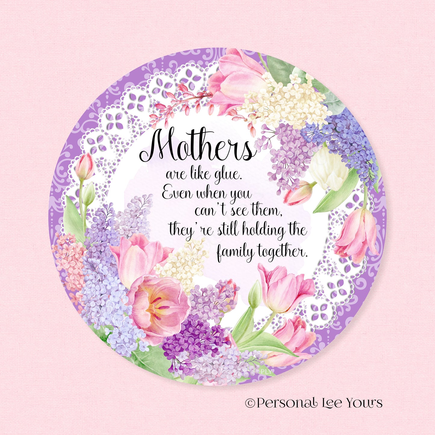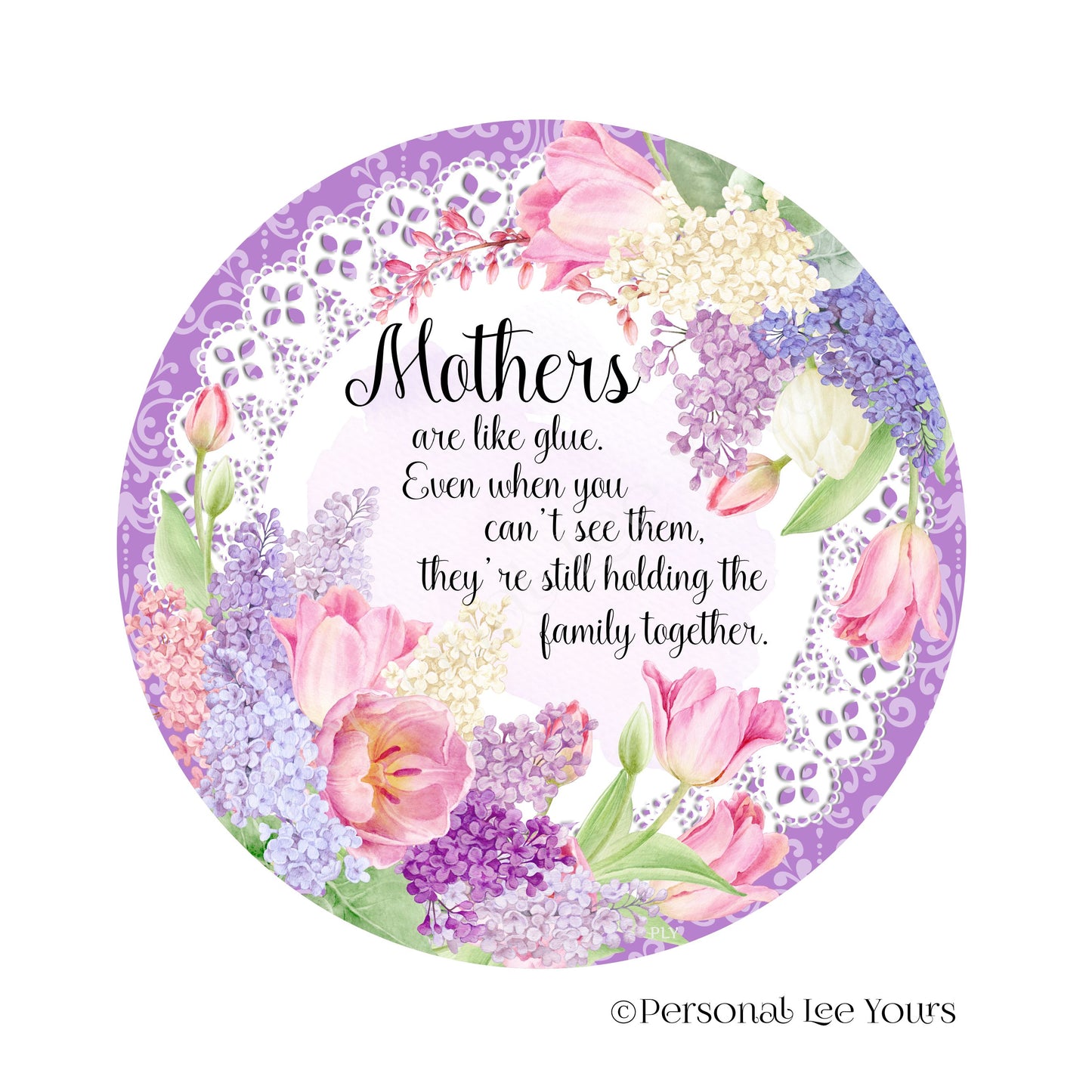 Wreath Sign * Mothers Are Like Glue * Round * Lightweight Metal