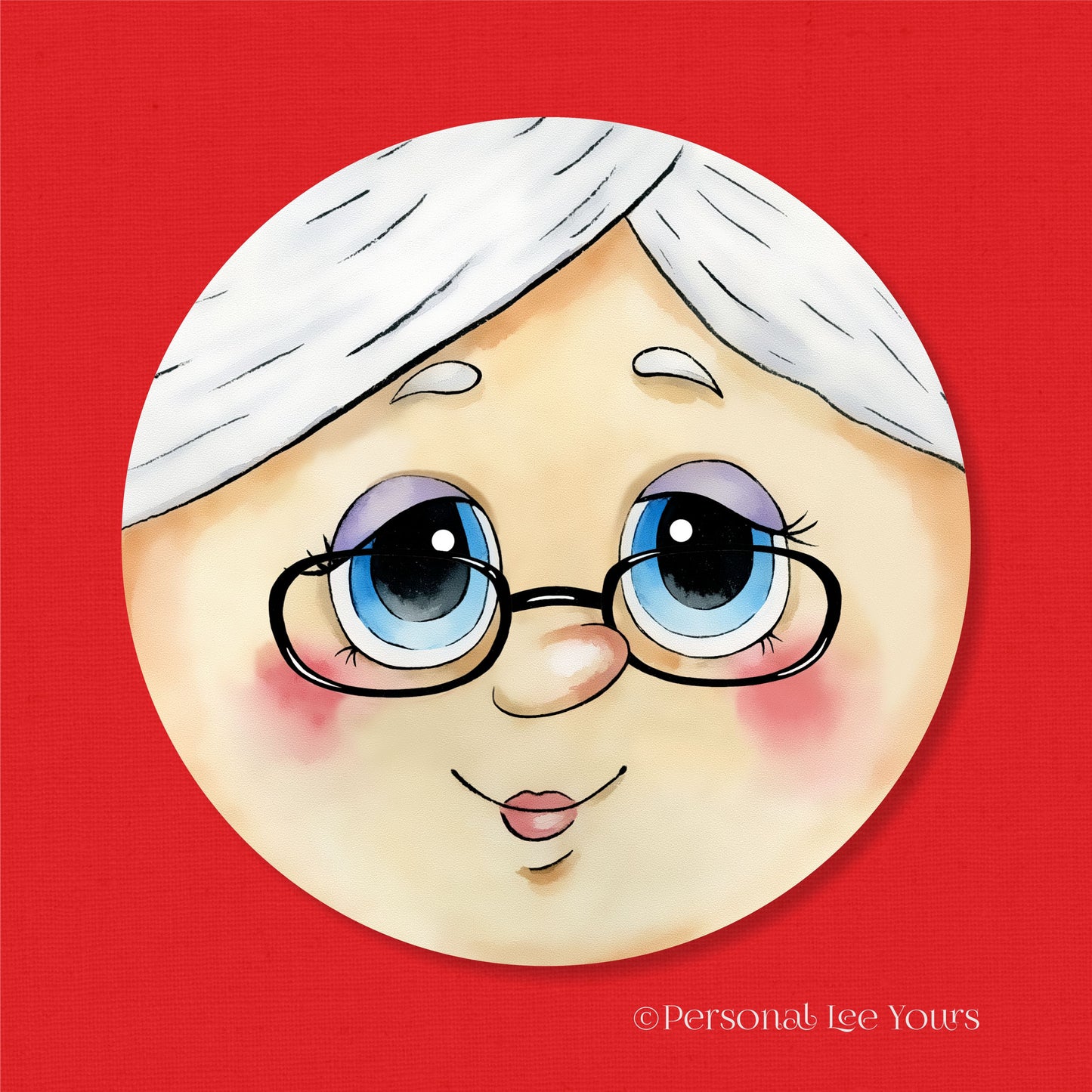 Christmas Wreath Sign * Mrs. Claus Face * Round * Lightweight Metal