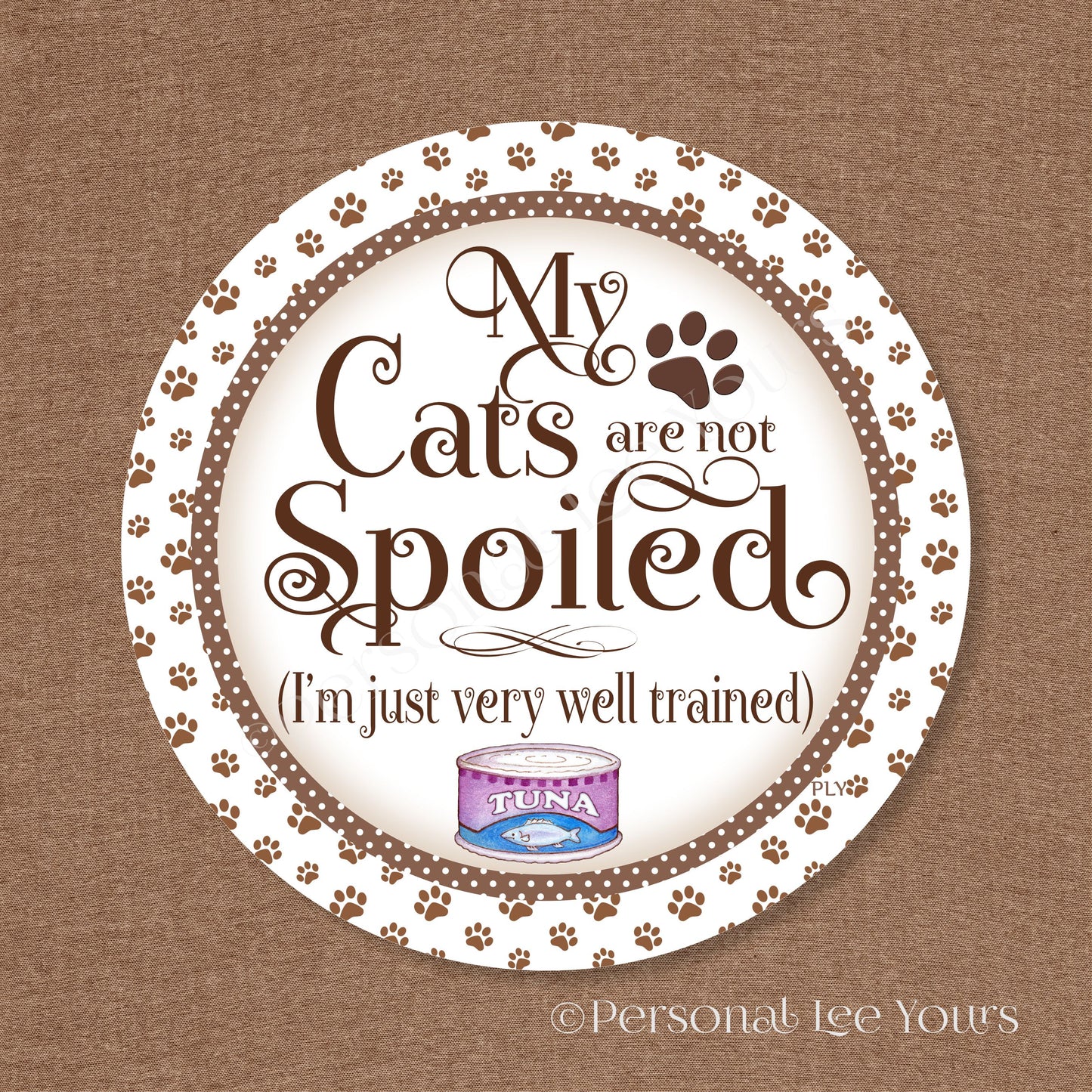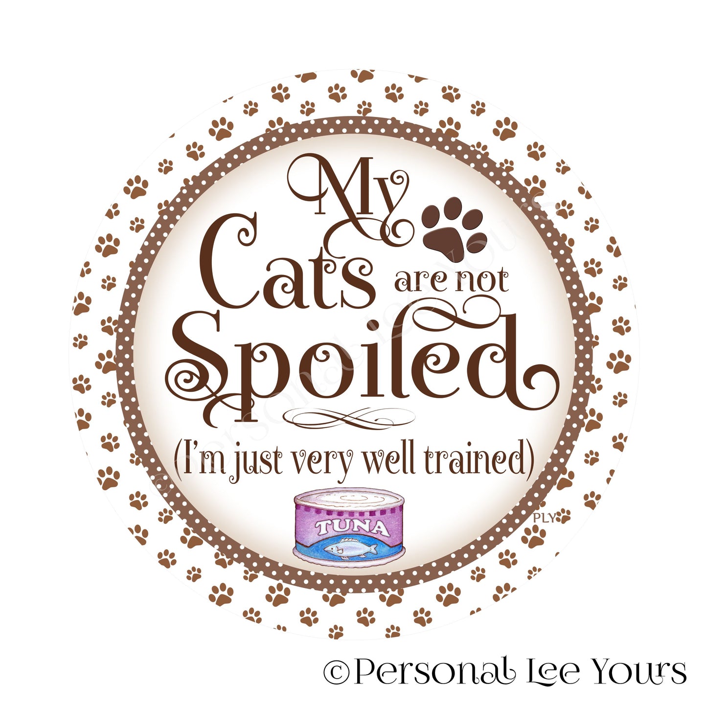 Wreath Sign * My Cats Are Not Spoiled * Brown * Round * Lightweight Metal