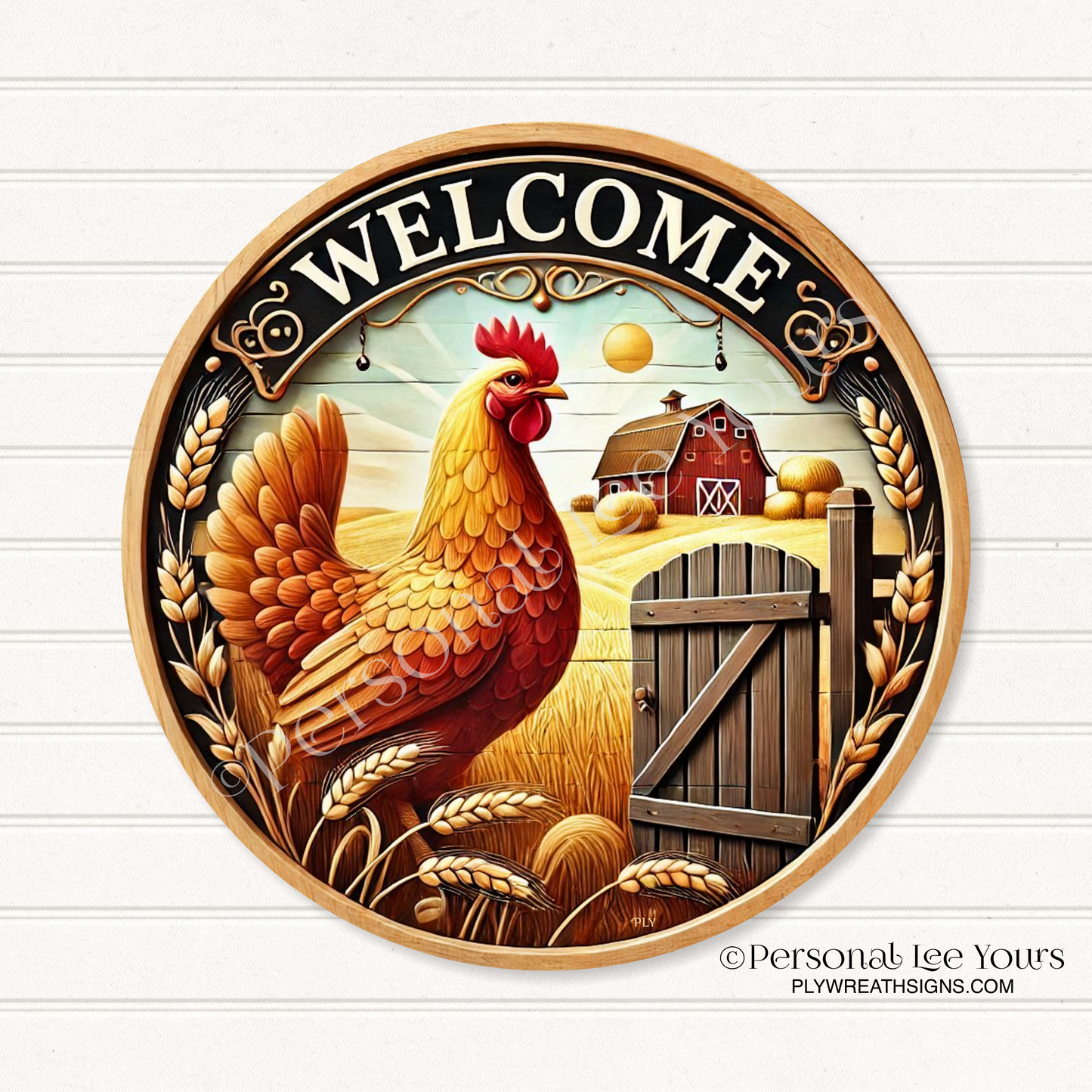 Wreath Sign * Rooster On The Farm Welcome * Round * Lightweight Metal