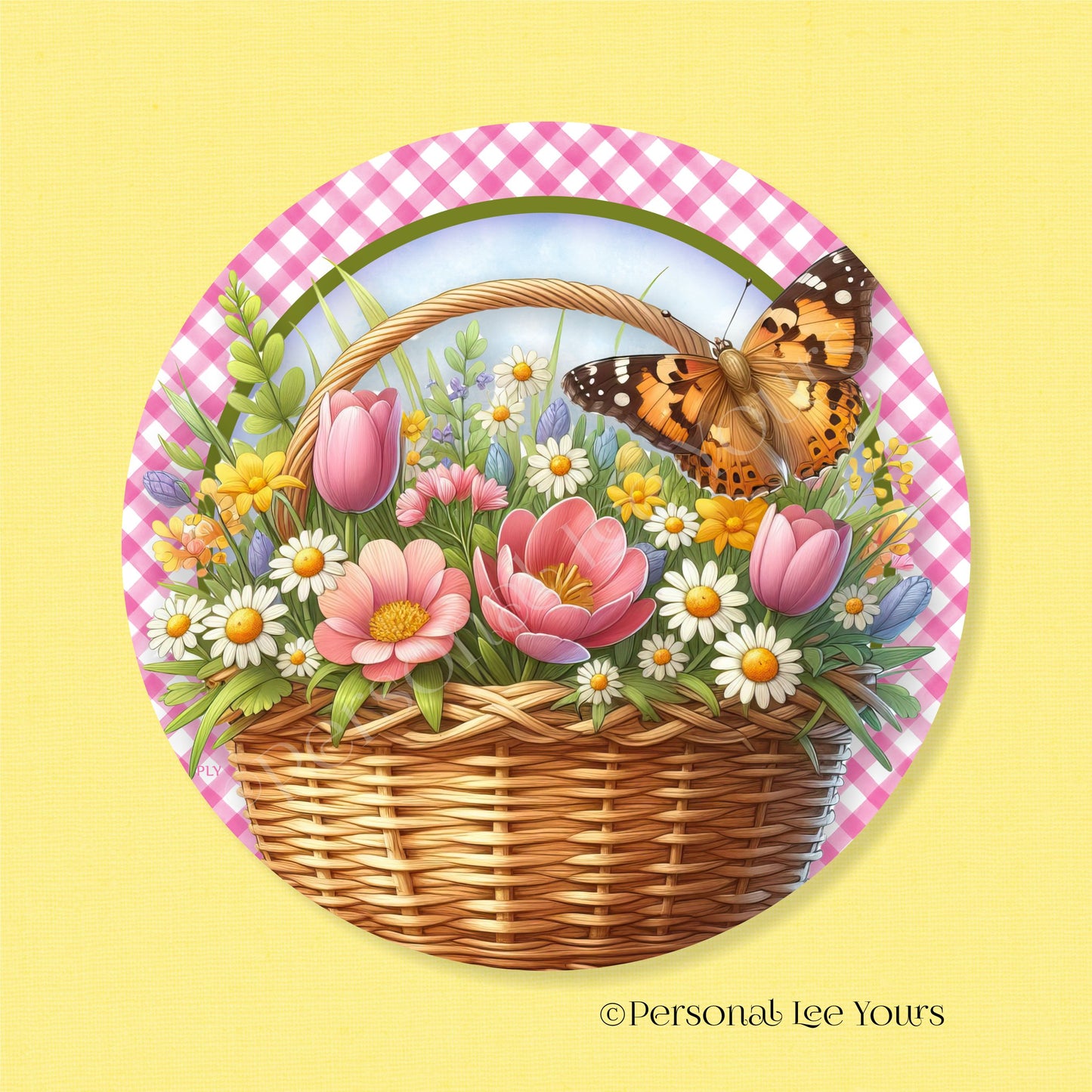 Wreath Sign * Spring Floral Basket * Round * Lightweight Metal
