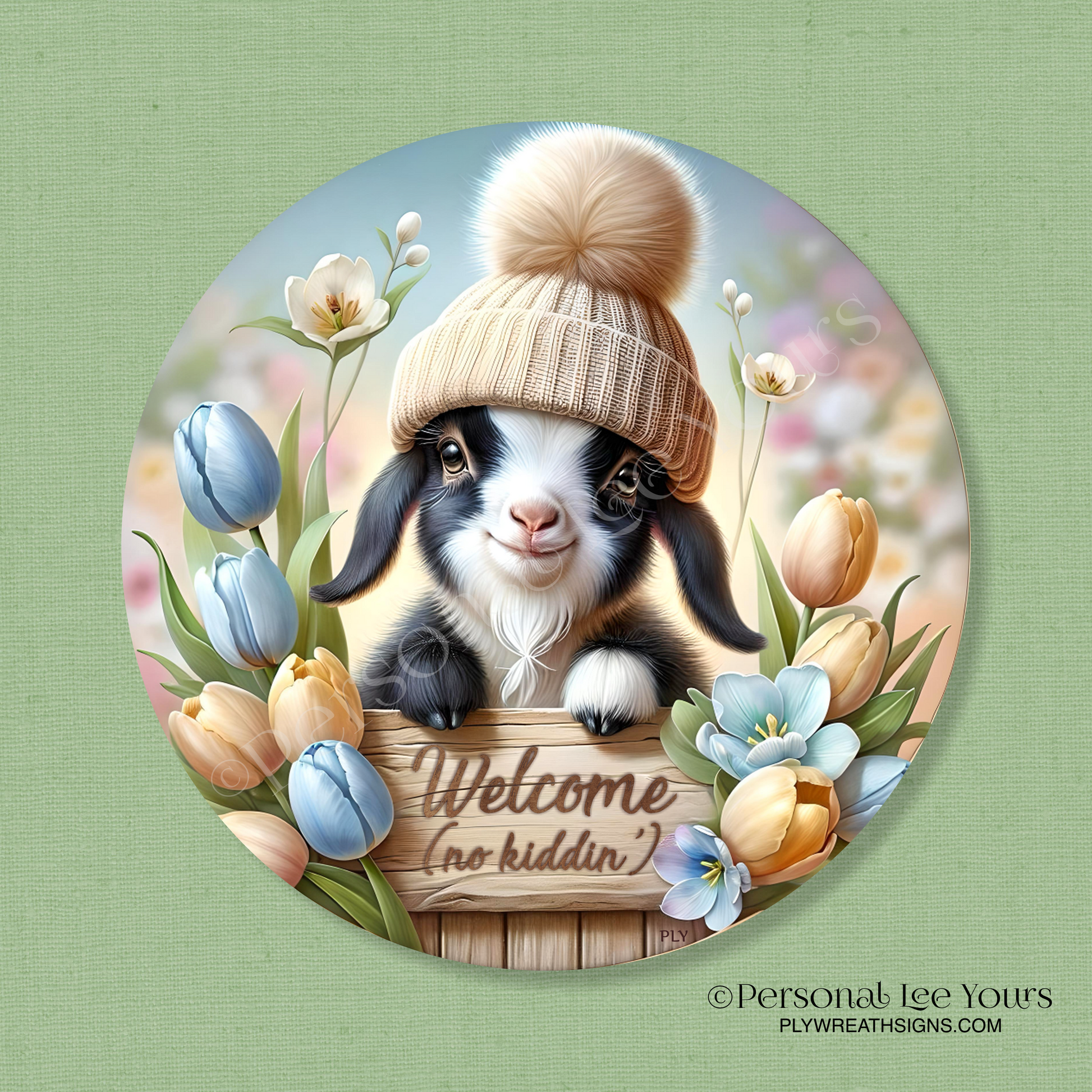 Wreath Sign * Spring Goat Welcome * Round * Lightweight Metal