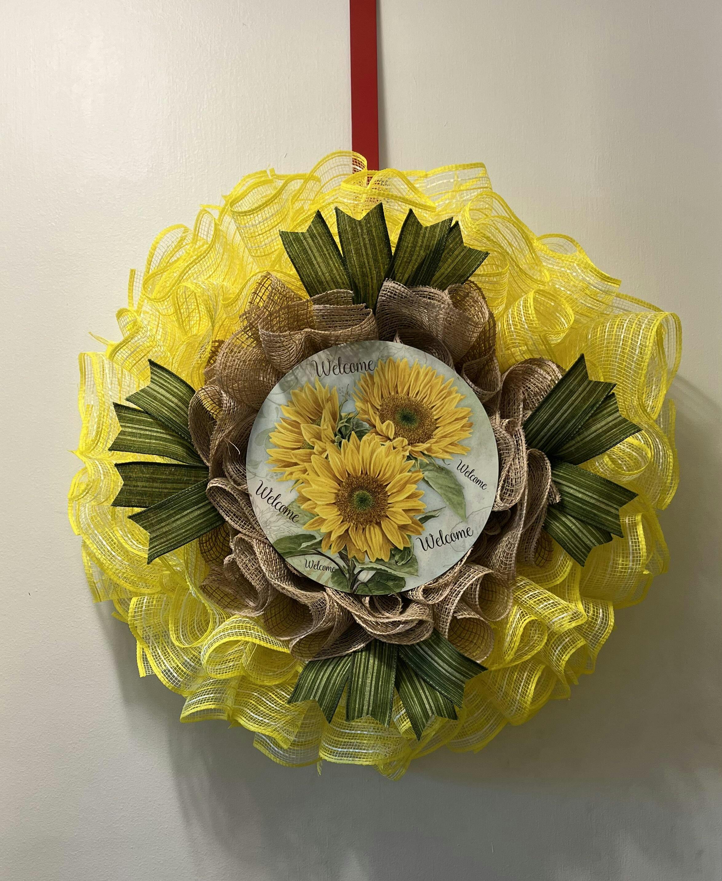 Wreath Sign * Sweet Sunflower Welcome * Round * Lightweight Metal