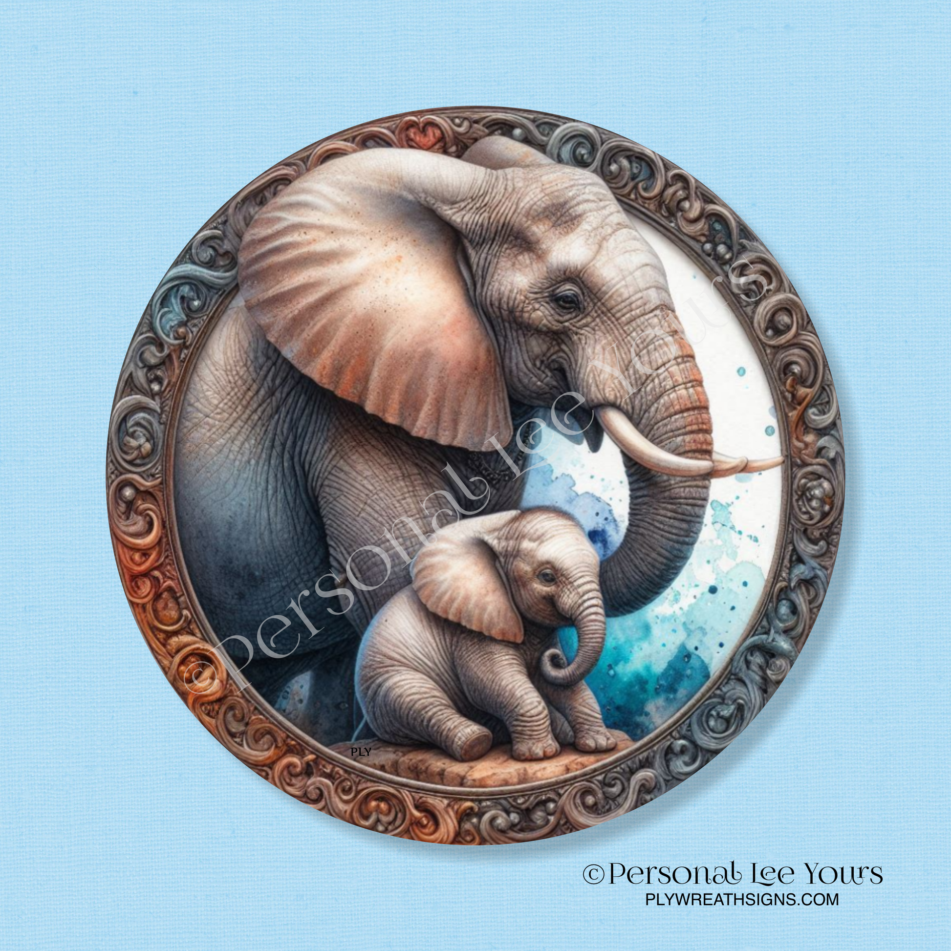 Wreath Sign * Under Watchful Eyes, Elephants * Round * Lightweight Metal