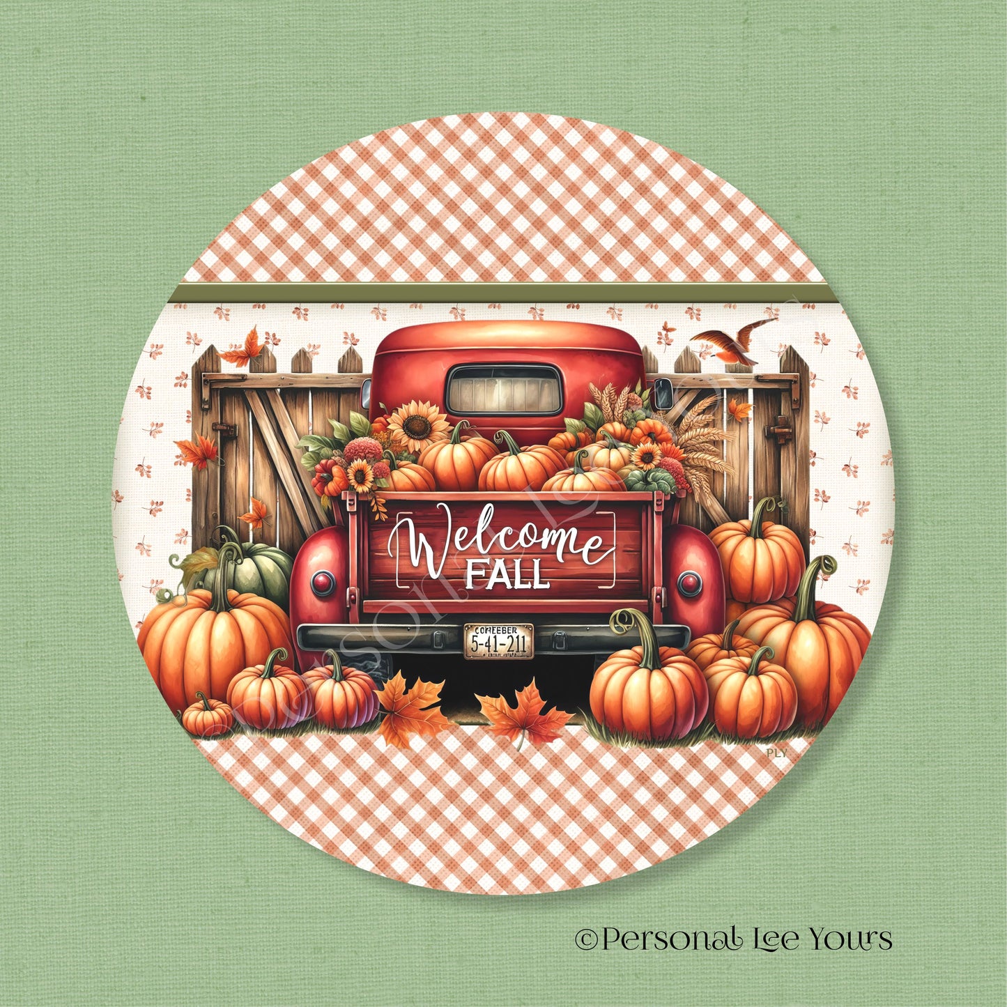 Wreath Sign * Welcome Fall Harvest Truck * Round * Lightweight Metal